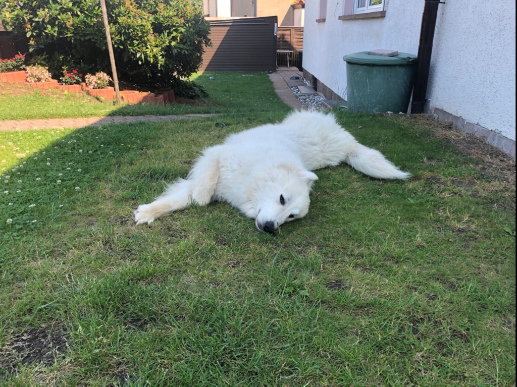 Nachmittags war dann jemand da. Da habe ich erstmal geschimpft. Aber meine Menschenomi hat mich beruhigt. Das war nur der Neffe von meinem großen Mensch. Und der hat an meiner Terrasse was repariert. Da durfte er auch in meinen Garten und ich habe ihn bewacht. Da lasse ich dann keinen ran. Ich bin eine Herdenschutzhündin. Wer zur Herde gehört wird beschützt!