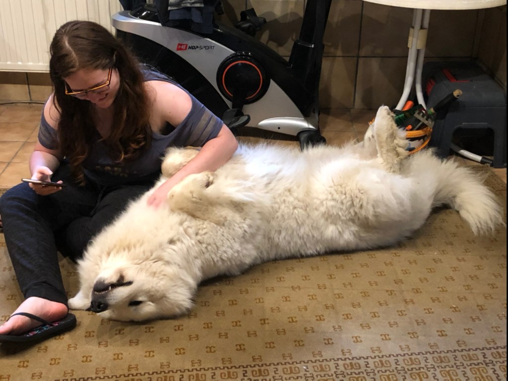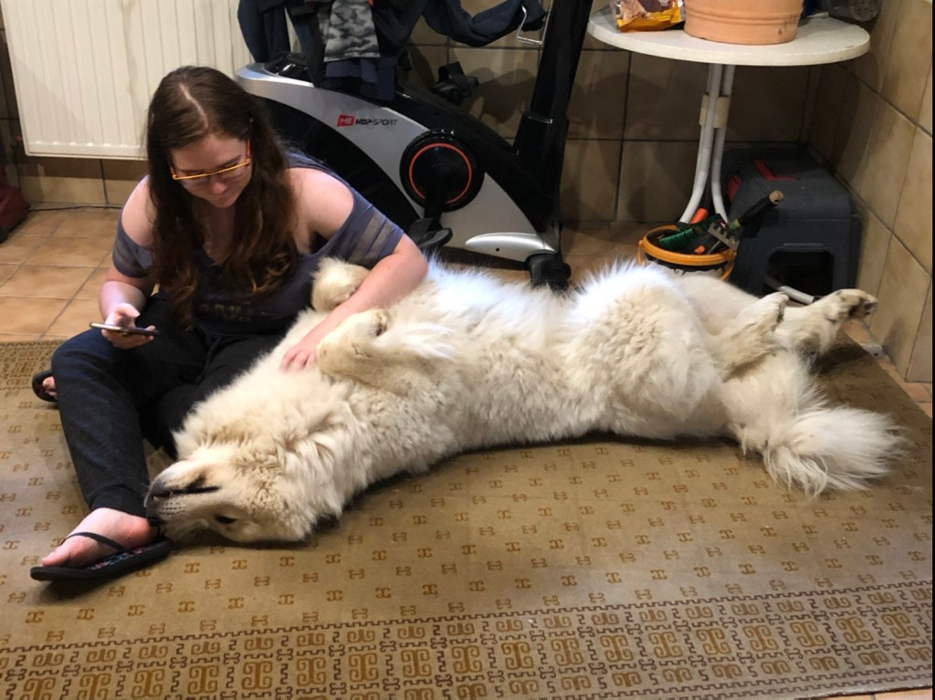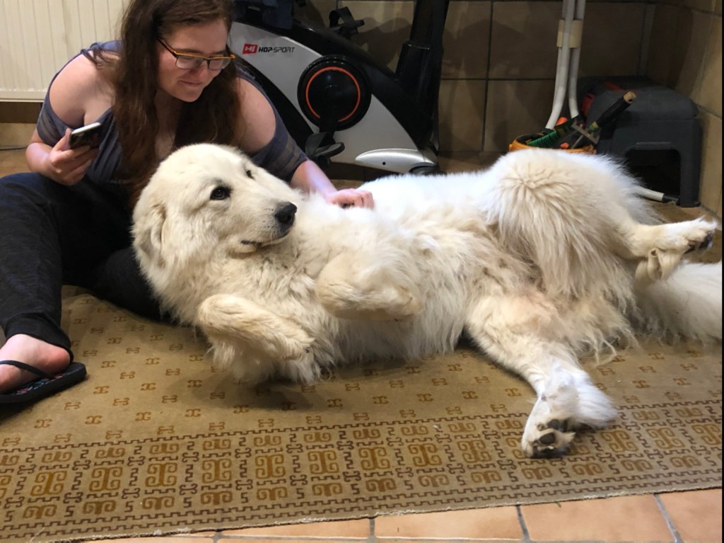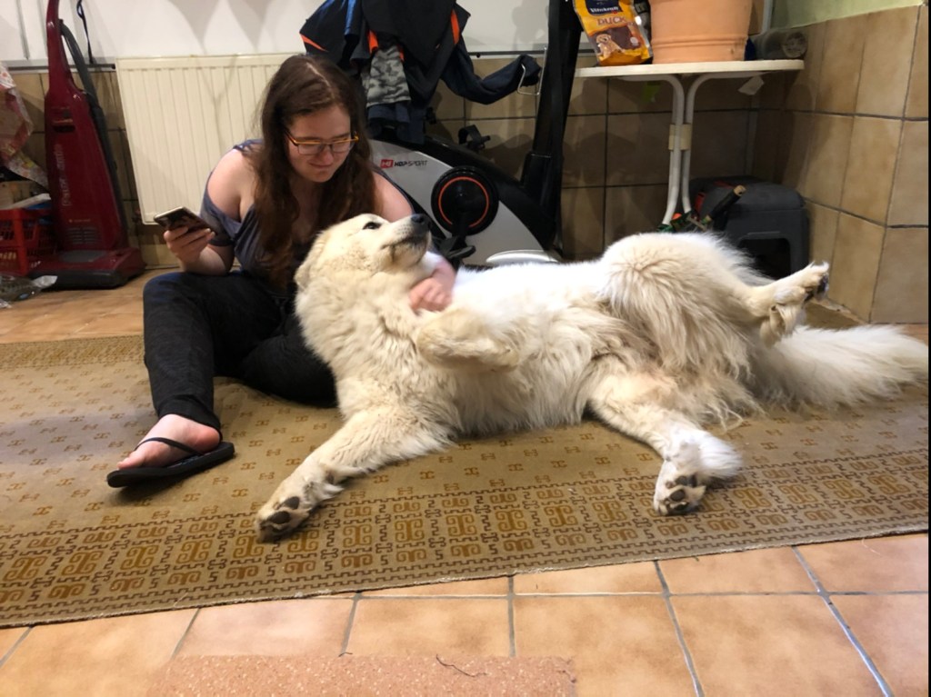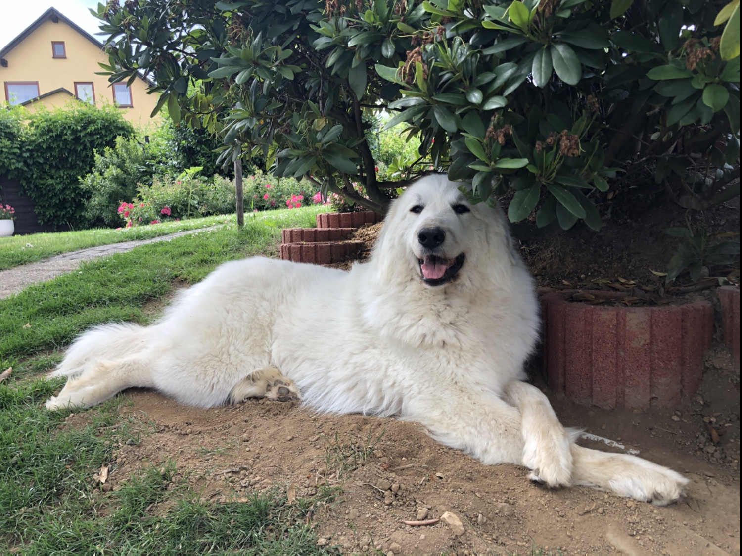 Mein großer Mensch ist heute zeitig von seiner Arbeit nach Hause gekommen. Da habe ich gleich an der Kellertür gerufen. Und dann haben wir gekuschelt. Ich freue mich immer, wenn mein großer Mensch zu Hause ist. Er hat dann wieder in der Garage gebaut. Mein Menschnopi auch und dann auch meine große Menschenschwester und meine große Menschin auch. Ich habe nur mal geguckt. Dann bin ich wieder in meinen Garten und habe meine Herde bewacht. Muß ja auch jemand machen. Und ich bin die einzige Herdenschutzhündin.