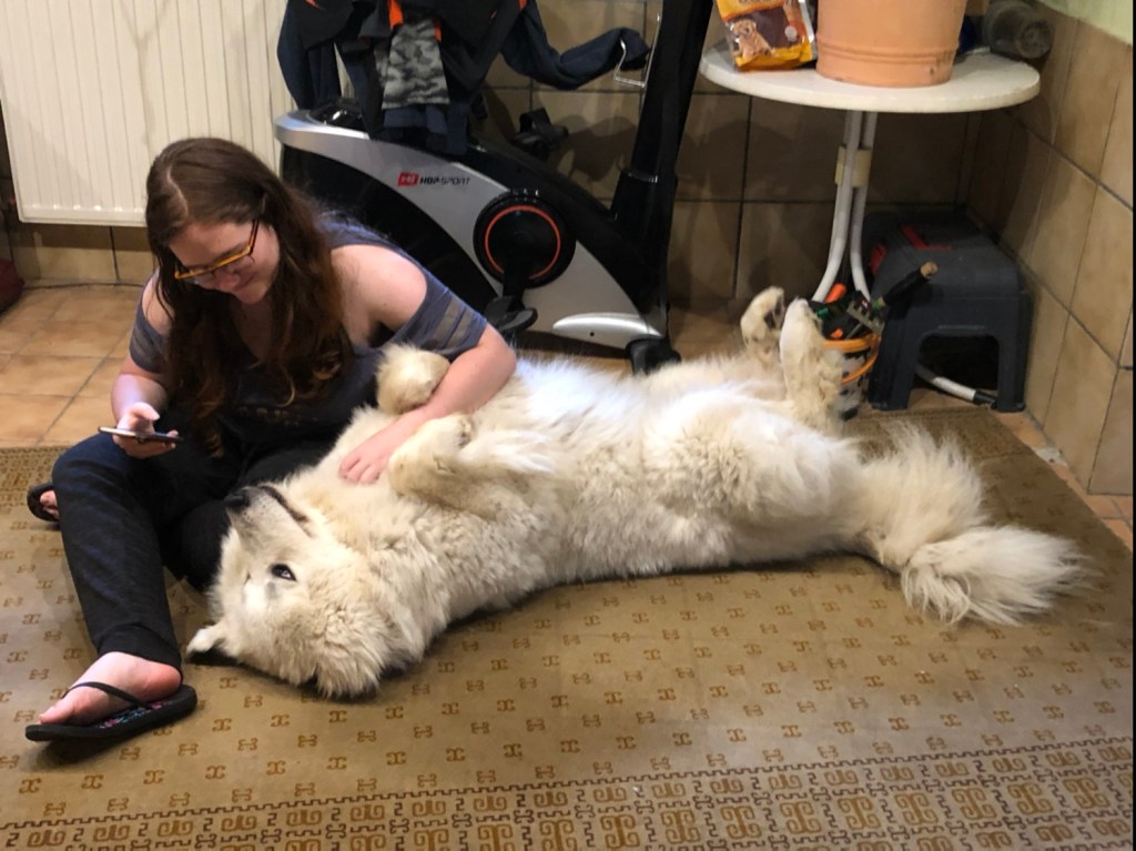 Mein großer Mensch hat mir dann noch mein Abendfutter gemacht und wir haben zusammen geabendfuttert. Dann ist er nochmal weggefahren. Ich habe mich ausgeruht und dann mit meiner großen Menschenschwester in meinem Keller gekuschelt.