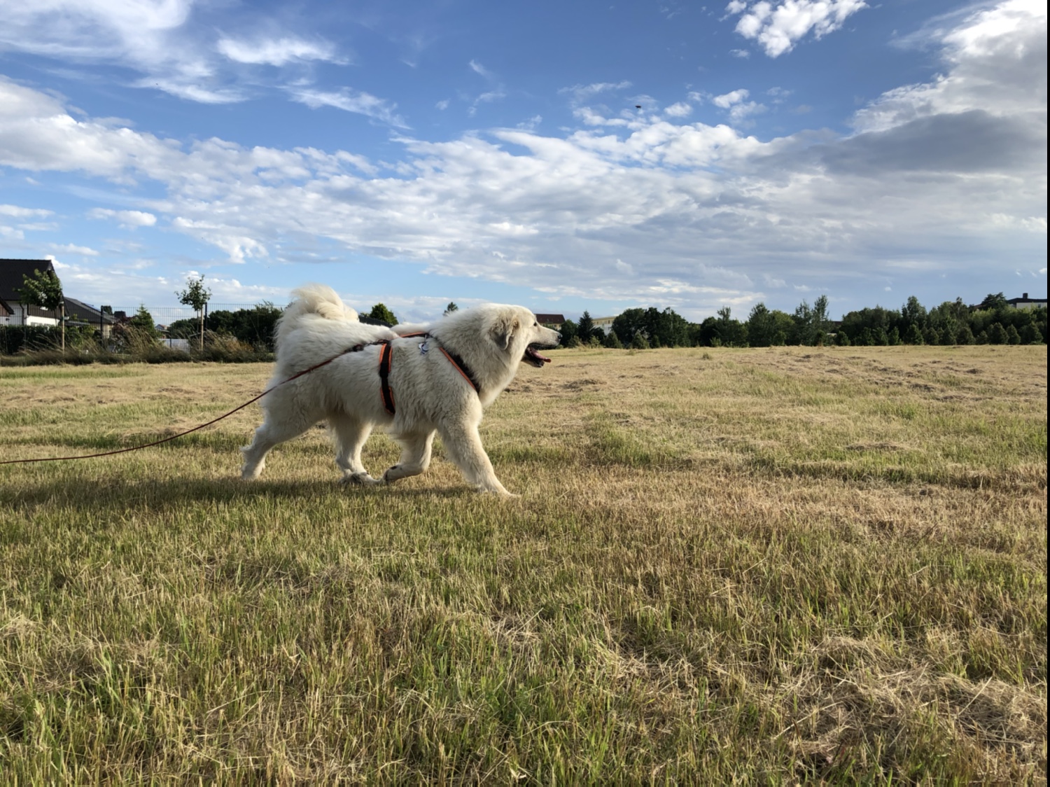 Als mein großer Mensch wieder zu Hause war sind wir noch abendspazierengegangen. Durch mein Wohngebiet zur Wiese hinter meinem Wohngebiet. Heute waren ganz viele Hunde unterwegs. Aber ich war ganz ruhig. Die dürfen ruhig alle auch auf meine schöne Wiese.