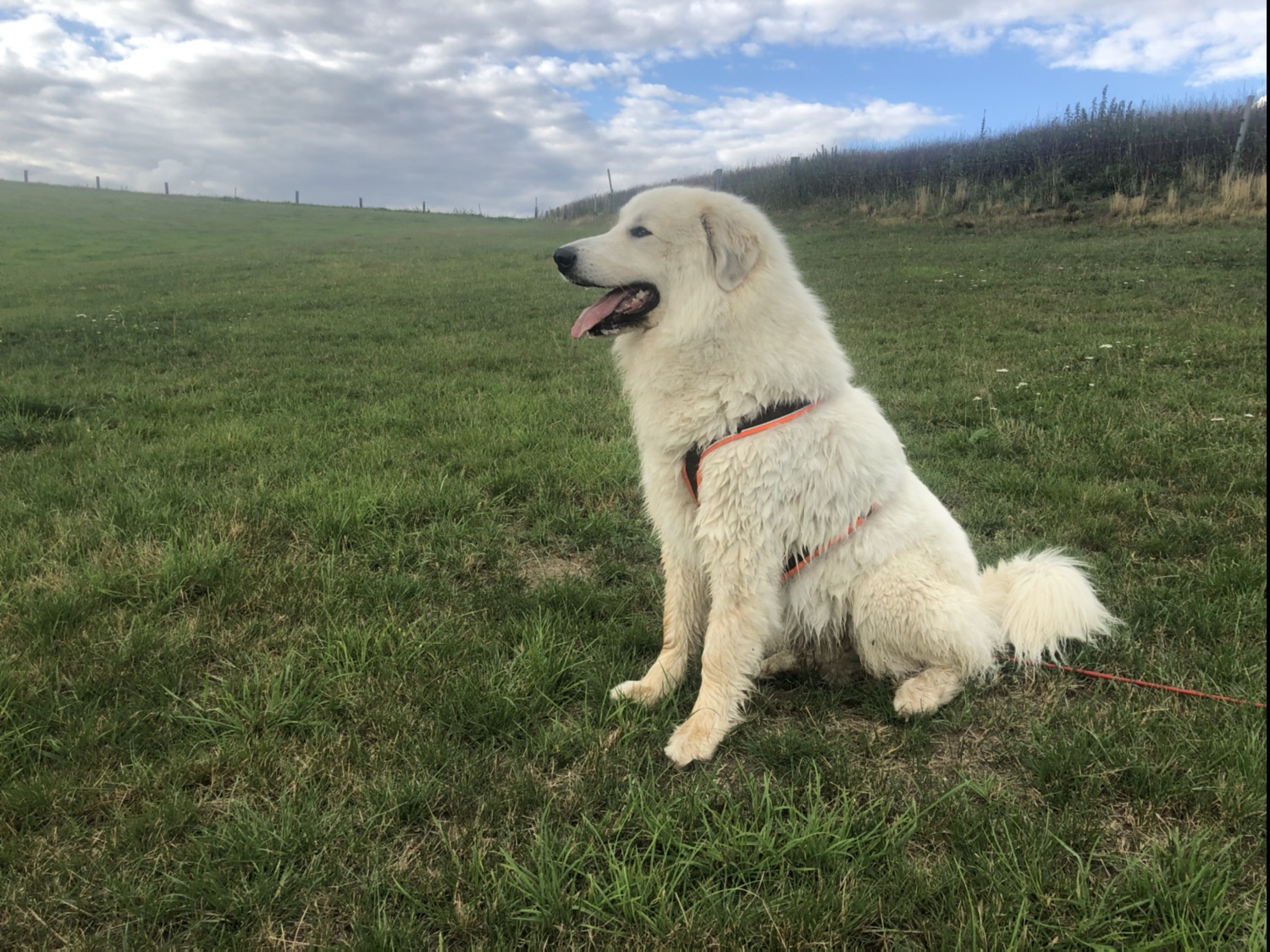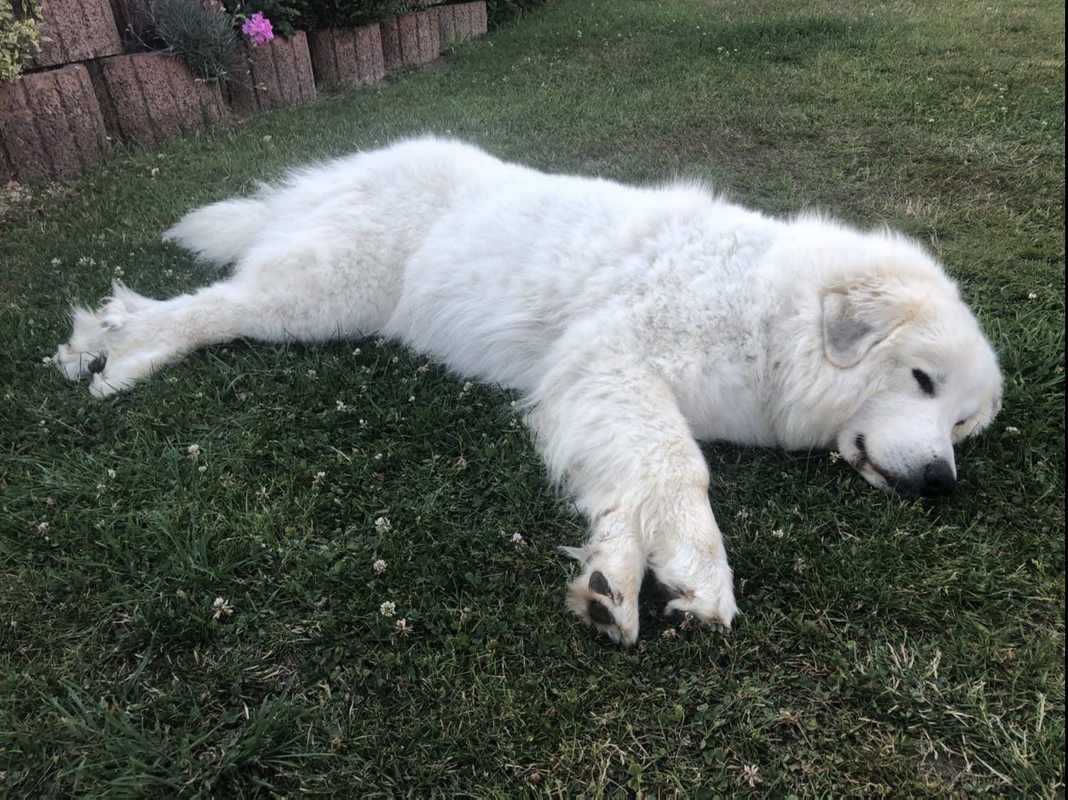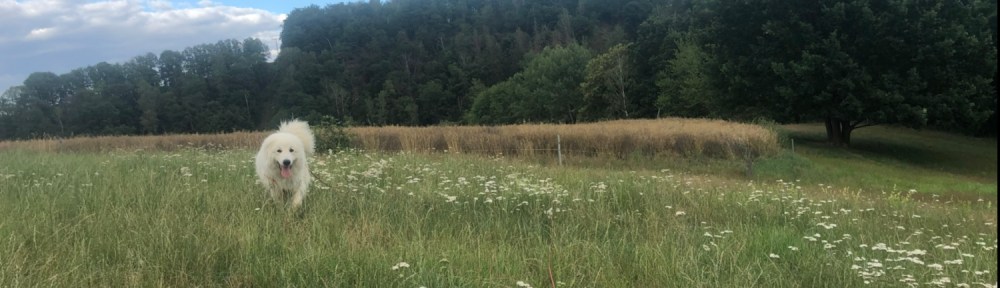 Mein großer Mensch hat dann auch gefrühstücksfuttert. In seiner Wohnung. Mit meinen Menschen. Ich habe im Garten auf gepaßt. Das ist wichtig, weiiil, das ist meine Aufgabe. Ich bin eine Herdenschutzhündin. Eine wunderschöne.
