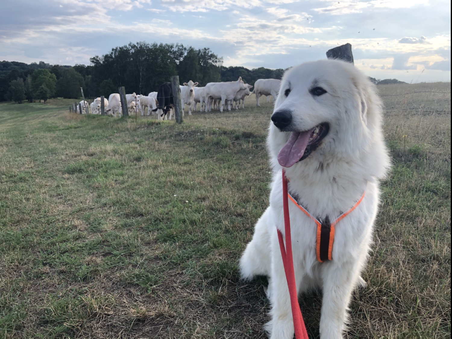Weil mein großer Mensch heute Abend nicht da war, bin ich mit meiner großen Menschin abendspazierengegangen. Zur großen Feldwiese. Um die sind wir rumgelaufen. An den doof guggenden Rindviehchern vorbei. Die guggen immer, als hätten die die Bella noch nie gesehen. Ich bin aber immer freundlich.