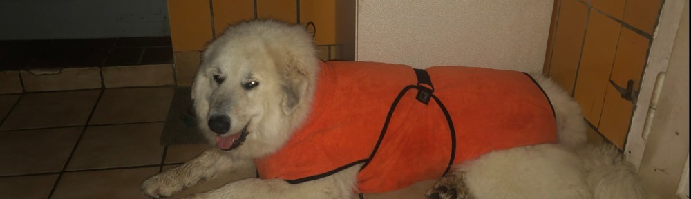 Auf dem Heimweg hat es dann nochmal ganzganz sehr geregnet. Da sind wir richtig naß geworden. Zu Hause bin ich dann gleich in meinen Keller gegangen. Mein großer Mensch hat mir mein nasses Geschirr abgemacht und dann habe ich mich geschüttelt. Da war ich gleich wieder fast trocken. Und mein großer Mensch konnte gleich meinen Keller schön wischen, weiiil, das ganze Wasser lag ja auf den Fliesen. So haben wir uns die Arbeit geteilt, mein großer Mensch und ich.