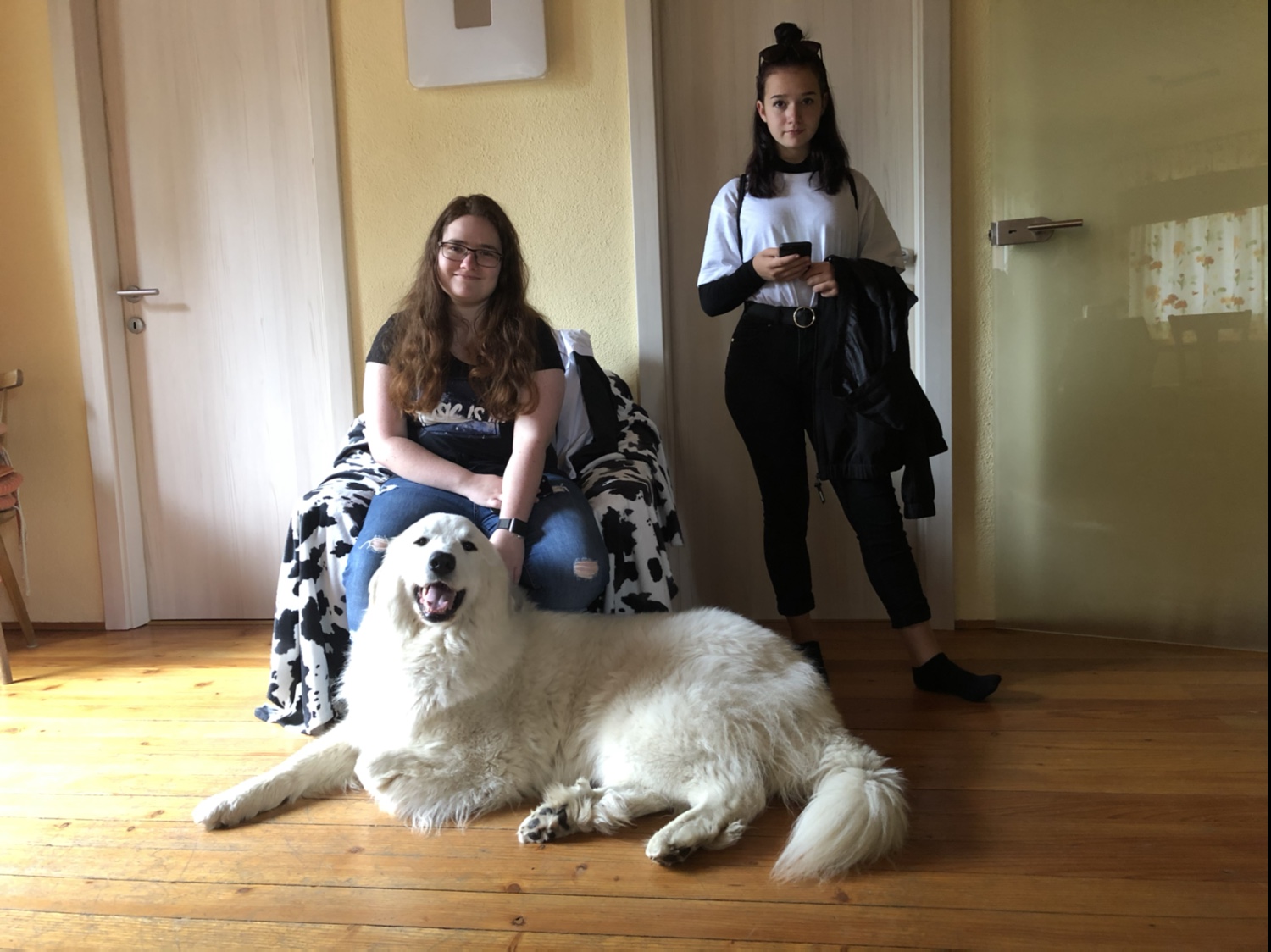 Die erste Nacht im Ferienhaus gut verbracht. Bella hat sich ihr Schlafplätzchen gestern Abend auch noch gesucht – bei den Kindern im Schlafzimmer.