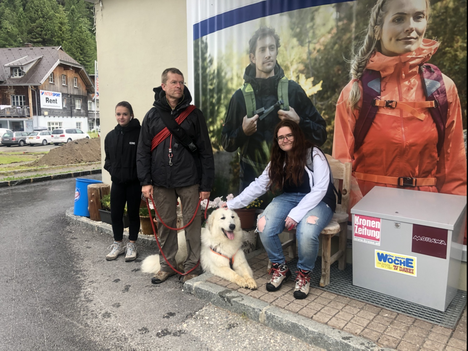 Der Abendspaziergang ist heute nur eine kleine Runde zur Bergwiese und um Ferienhäuser und Gasthof. Die zieht sich aber, da Bella drei Picknickpausen macht und ihre gesamte Tagesration Trockenfutter wegputzt. Den Abend verbringen wir dann alle ziemlich geschafft im Ferienhaus.