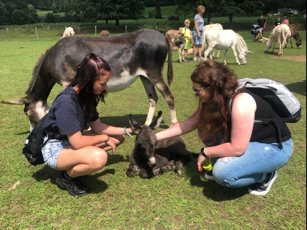 Der Eselpark ist so toll, aber ein Besuch mit Hund ist leider kompliziert. Bei unserem letzten Besuch hat meine Freundin zwischenzeitlich meinen Hund übernommen. So konnte ich dann auch einen Sprung ins Gehege 🙂
