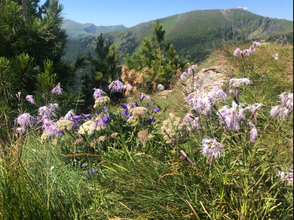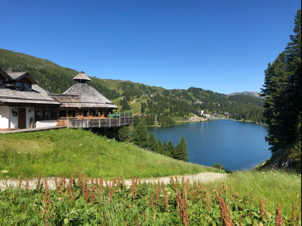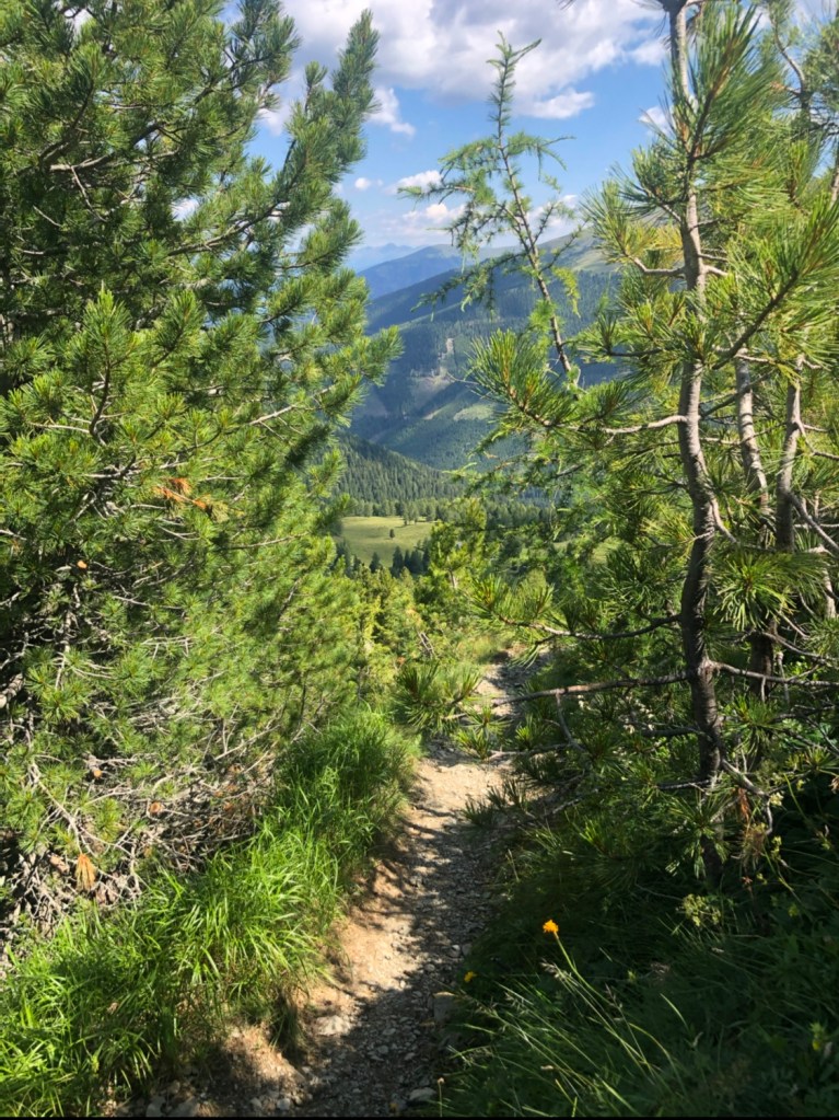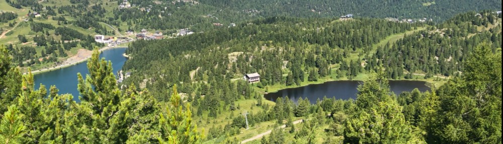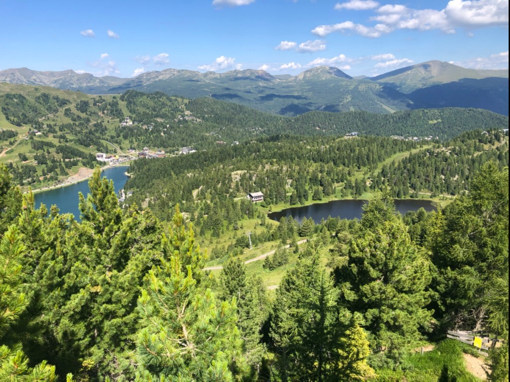 Unterwegs haben wir immer wieder eine wunderbare Sicht auf den Turracher See und den Schwarzsee, sowie die umliegenden Gebirgsketten. Dann wird der Weg schmaler und etwas steiler. Wir kommen aber gut voran. Die Pyri fühlt sich absolut wohl an dem steilen, steinigen Hang.