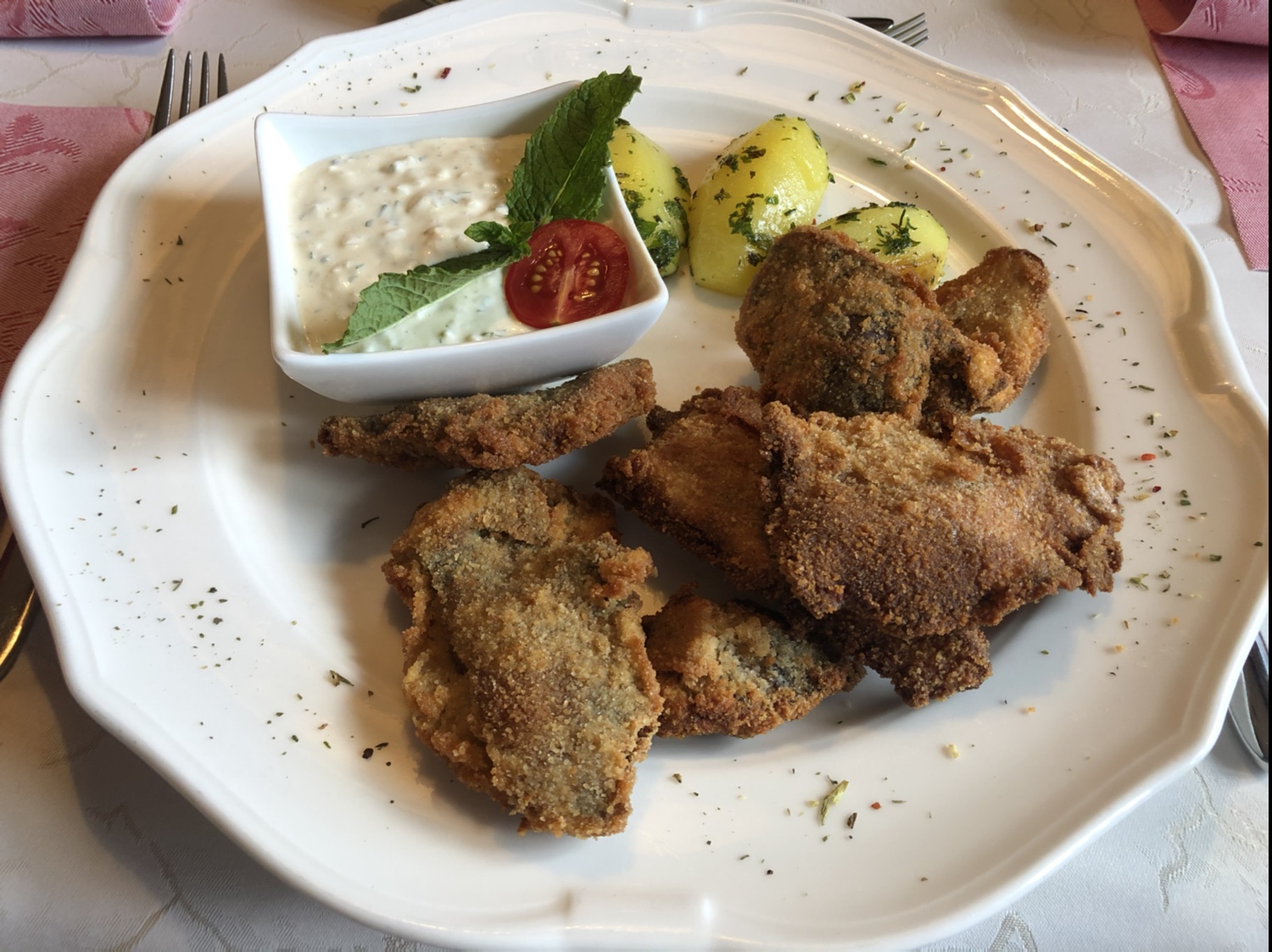 Dann kommen wir am „s‘Hüttenplatzerl“ vorbei. Hier wollte Bella schon vorige Woche einkehren. Diesmal kommen wir ihrem Wunsch nach. Wir bestellen Buttermilch mit Preiselbeeren, Hollundersaft und später noch einen Kaktusfeigensaft – alles hausgemacht – dazu Saures Rindfleisch mit Kürbiskernöl und viel frischer Zwiebel und einen Kaiserschmarren mit Rum-Rosinen und Kirschen. Alles total lecker.