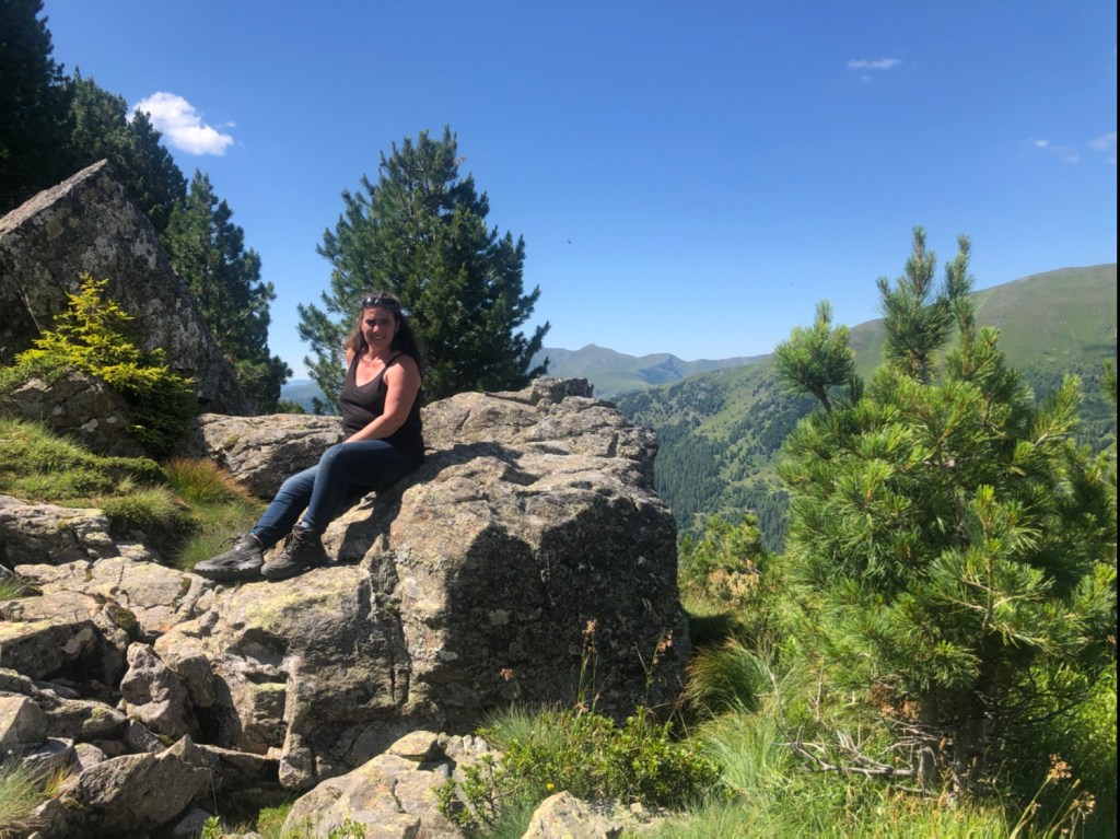 Die meisten Wanderer bleiben erstmal kurz stehen, bewundern die Pyri. Die genießt das, hat sich extra fein in Position gelegt und weiß ganz genau, wie sie die Aufmerksamkeit auf sich lenkt.