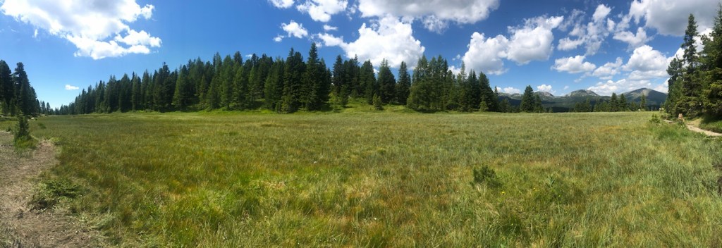 Nach dem Frühstück brechen wir auf. Die Pyri ist schon ganz ungeduldig. Wir gehen zunächst zum Turracher See und an der Straßenseite bis zum Seehotel „Hochschober“. Von da aus steigen wir zur „Sonnenalm“ hinauf. Hier biegen wir dann zum Aufstieg auf den Schoberriegel ab. Der Weg ist zunächst sehr breit und geschottert. Die Wegzeit von der „Sonnenalm“ aus ist mit 1 Stunde angegeben.