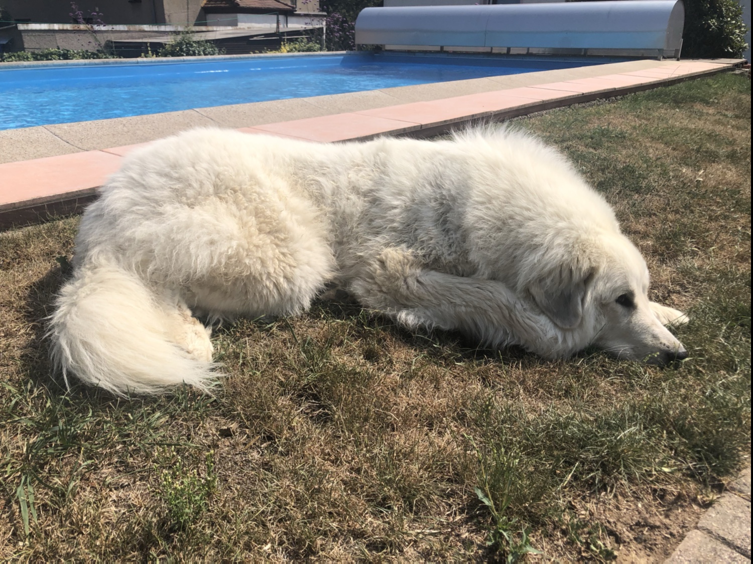 Ich bin heute ganzganz häufig in meiner Kellerwohnung gewesen. Da war es schön kühl. In meinem Garten ist es ganz warm gewesen. Meine großen Menschen sind dann nochmal weg. Mit meiner großen Menschenschwester. Aber die war dann auch wieder zu Hause. Nachmittags bin ich noch mit meiner kleinen Menschenschwester an meinem Pool gewesen. Da habe ich mich gesonnt! Aber nicht so sehr lange, weiiil, da war es ganz schön warm.