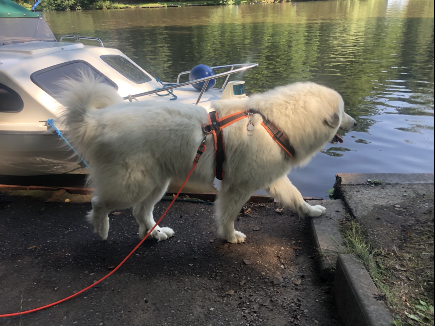 Und da sind wir weiter zum Parkplatz gelaufen. Da waren ganz viele Autos. Eine Million. Vielleicht 🐶🤔🐶. Und vom Parkplatz sind wir zum großen Fluß mit dem komischen Namen gegangen. Und da waren ganz viele Menschen. Auch eine Million. Vielleicht 🐶🤔🐶. Ich bin mit meinem großen Mensch einfach am Fluß lang weitergegangen.