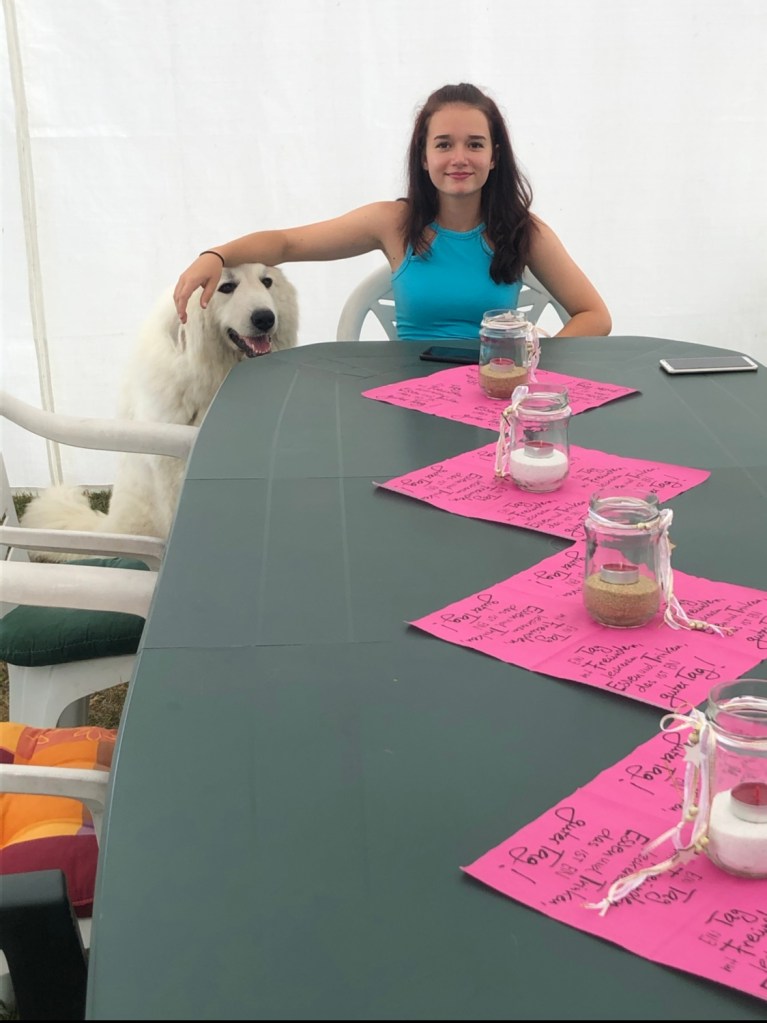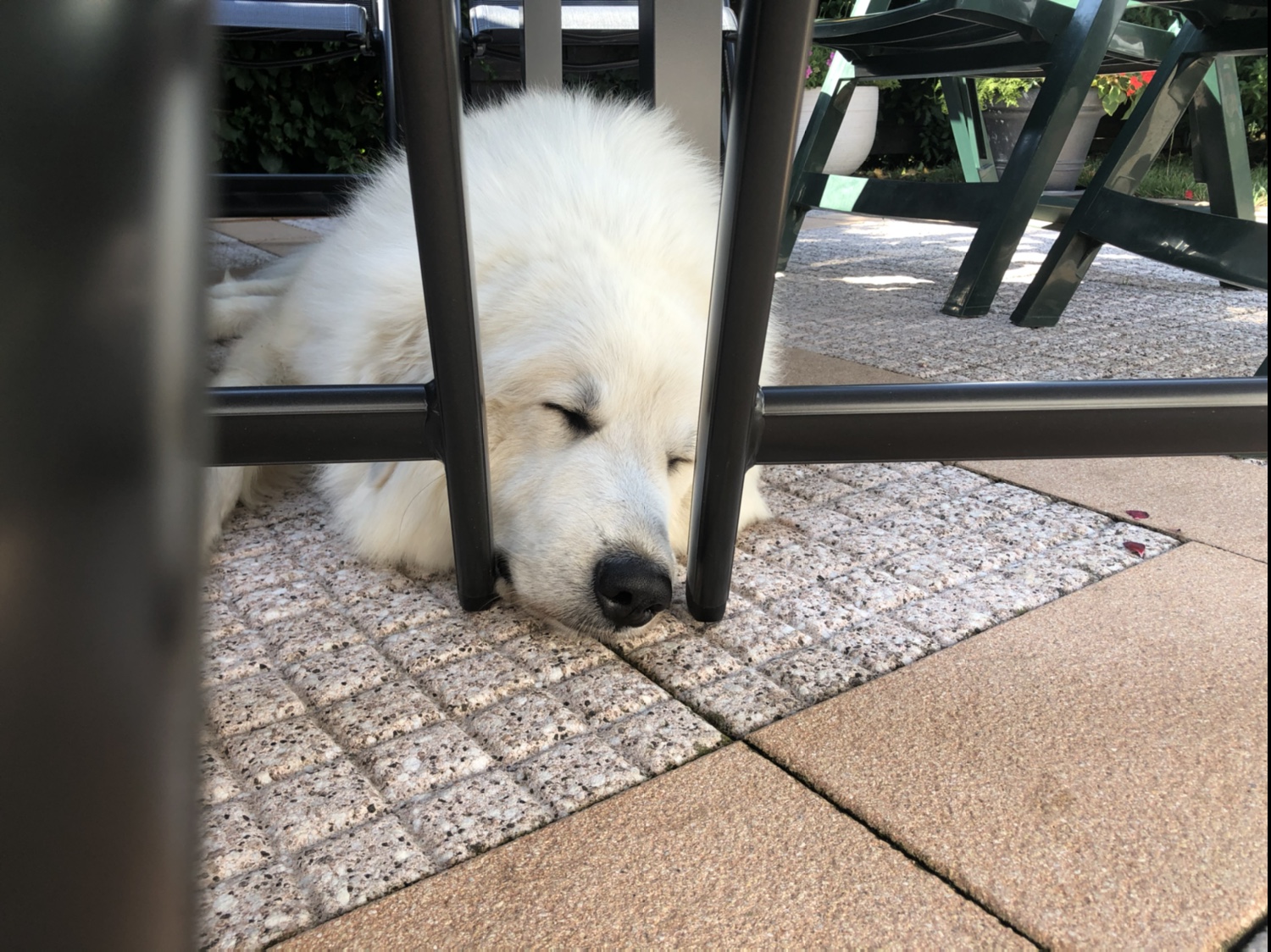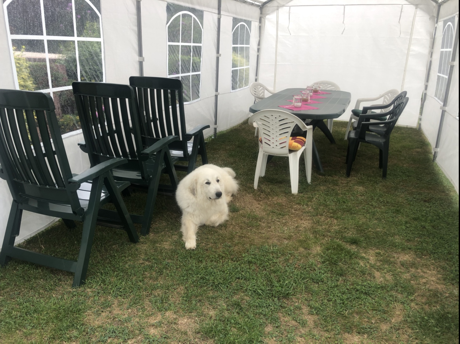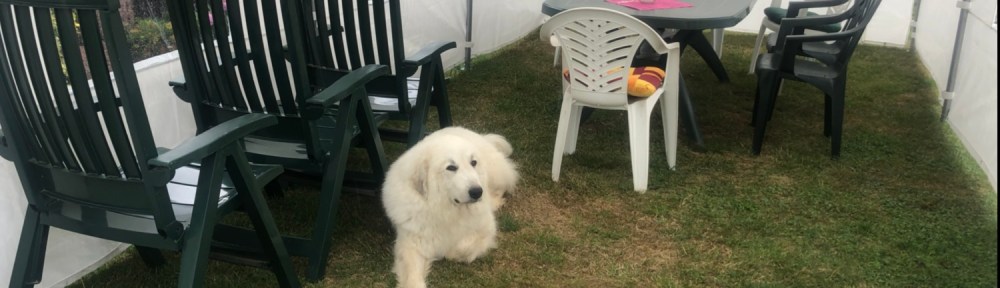 Ich bin dann in meinem Garten gewesen. Da steht ein großes Zelt. Das ist weiß. Wie mein französianisches Auto. Das ist auch weiß. Mein Pyrifell ist champagnercremeweißfarben. Das sieht am schönsten aus. Ich habe mich dann auch mal in das große Zelt gelegt und alles bewacht. Ich bin eine Herdenschutzhündin. Ich passe auf alles auf. Und dann hat es auch noch geregnet. Da bin ich auch ganz schnell aus meinem Garten in das weiße Zelt geflitzt.
