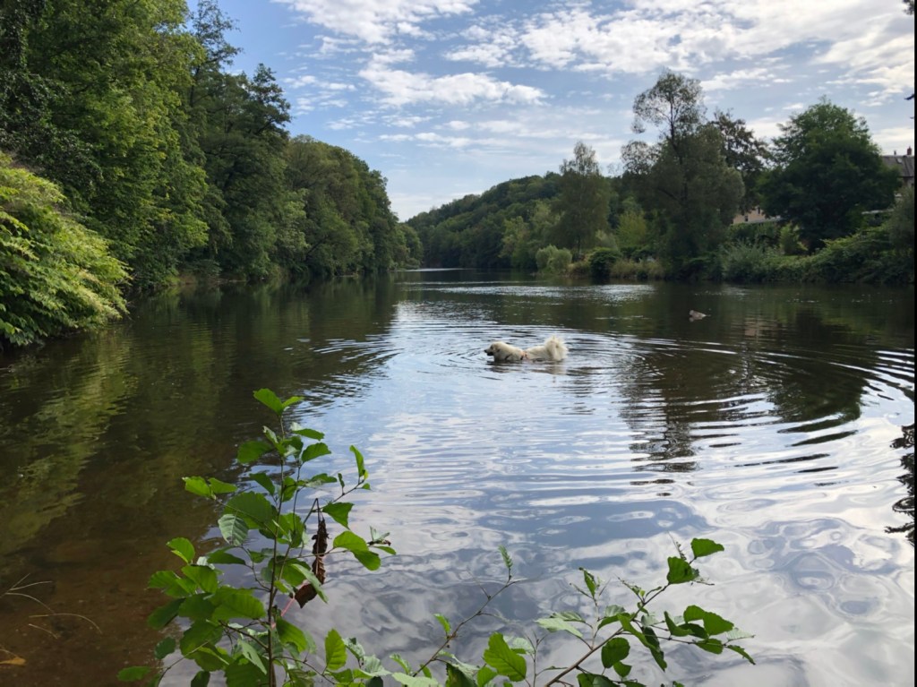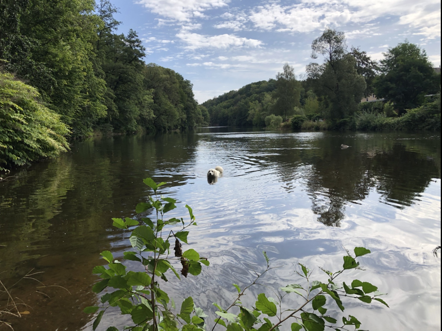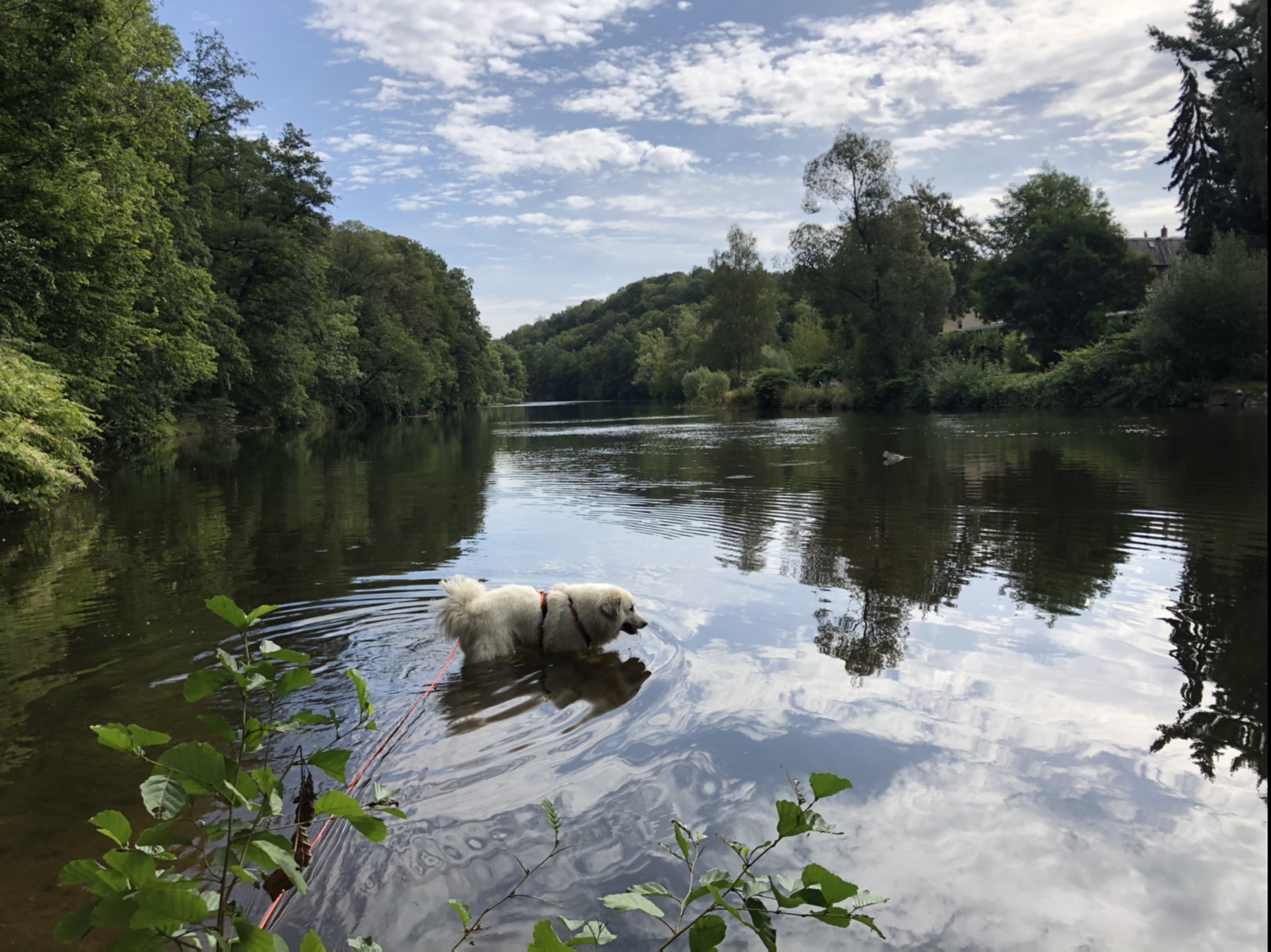 Und da bin ich dann in die Tschooo-Pauuu zum Baden gegangen. Heute ging es ganz flach rein. Da konnte ich ganz weit laufen. Erst dann ist das Wasser tief geworden. Ich konnte meine Pyripfötchen kühlen und mich auch. Und getrunken habe ich natürlich auch gleich was.