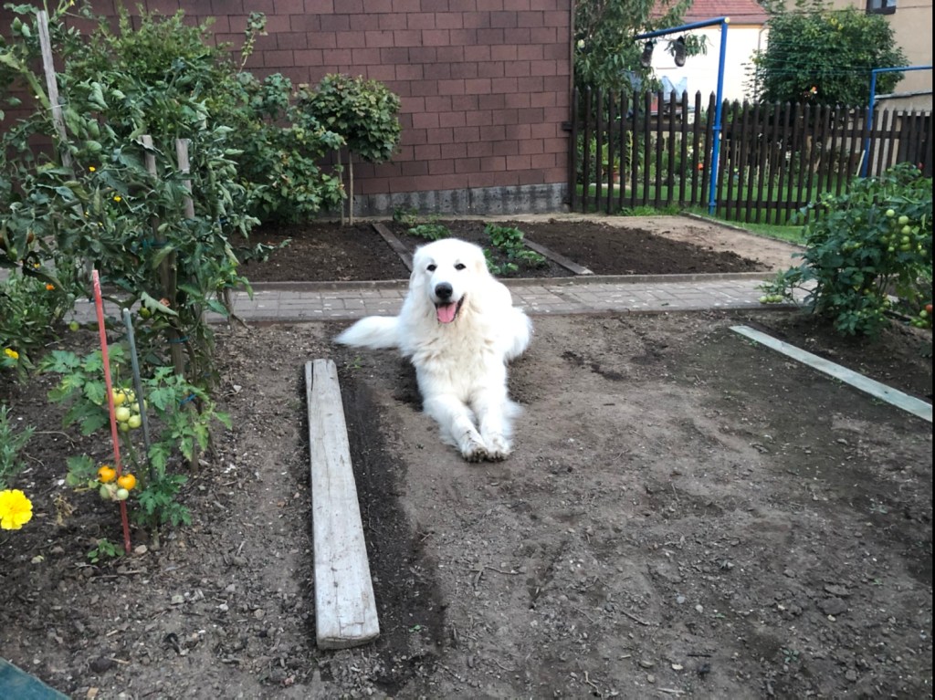 Dann bin ich erstmal in meinem Garten gewesen. Bei meiner Arbeit! Ich bewache meinen ganzen Garten. Und mittags bin ich mit meiner großen Menschenschwester in meinem Keller gewesen. Weiiil, da ist es schön kühl. Und wir haben gekuschelt.