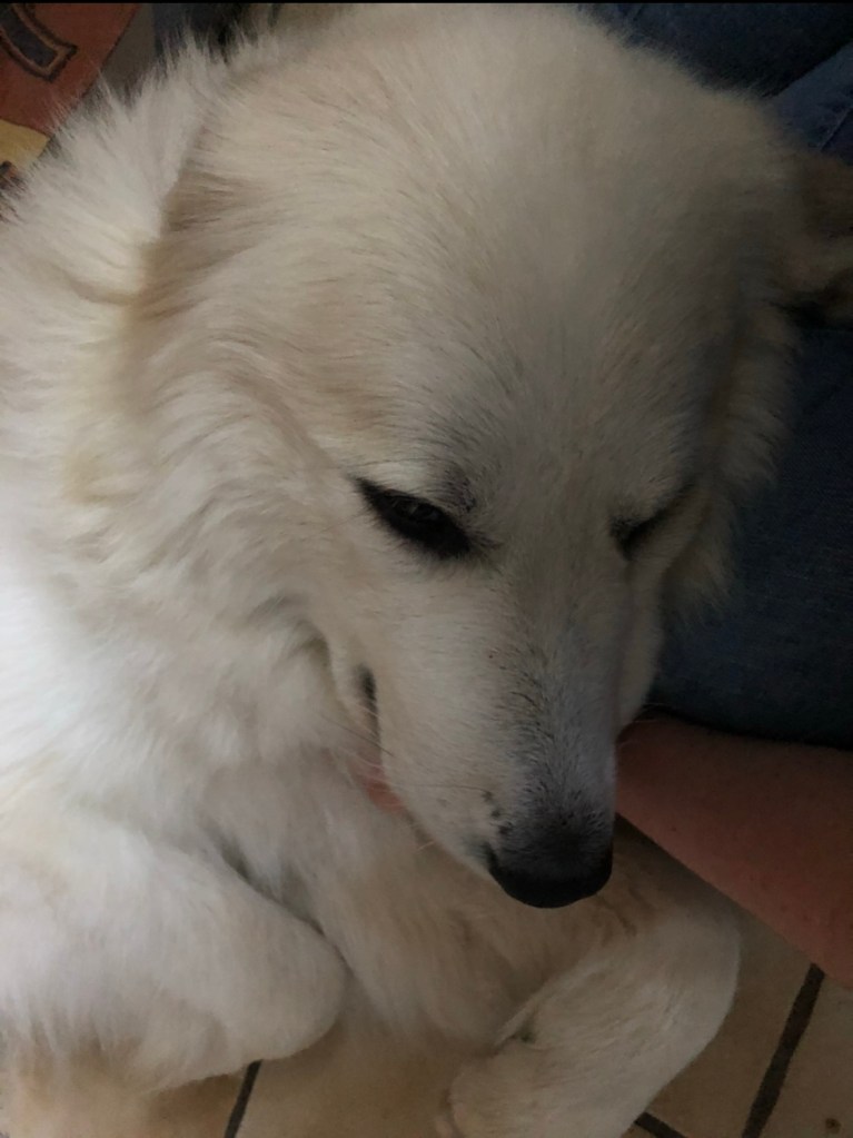 Heute früh habe ich wieder ganzganz zeitig mit meinem großen Mensch gekuschelt und gefrühstücksfuttert. Leberwurstbrötchen mit Leberwurscht drauf! Dann habe ich noch ein paar Krümel Trockenfutter gefuttert und danach in meinem kleinen roten Ferienhäuschen Hühnerfüße geknabbert und nochmal geschlummert.