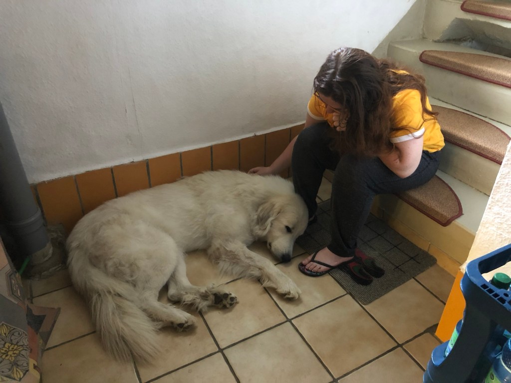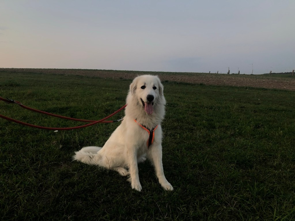 Aber ich bin dann zu meinen Menschen zurückgegangen und wir sind auf die große Feldwiese und da konnte ich schön schnuffeln und war auch ganz lieb. Nur auf dem Heimweg habe ich nochmal wild getobt, weiiil, da haben wir die schwarzen Hunde getroffen. Und ich muß doch meine Menschen beschützen. Ich bin doch eine Herdenschutzhündin.
