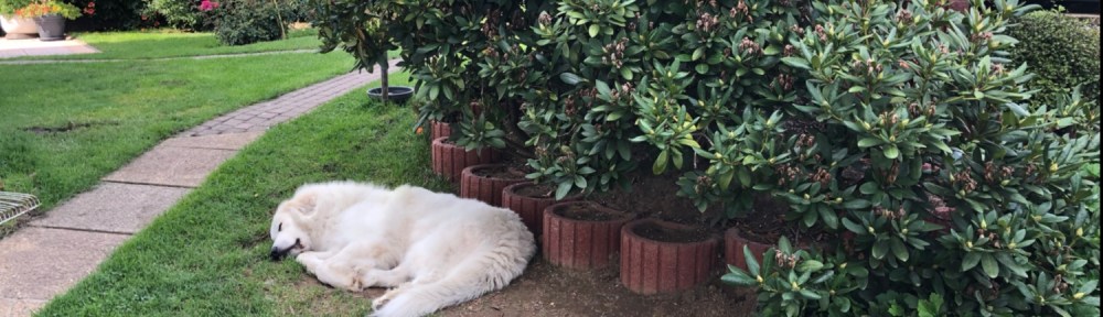 Aber zuerst habe ich mit meinem großen Mensch gefrühstücksfuttert. In meiner Kellerwohnung. Leberwurstbrötchen mit Leberwurscht drauf! Danach habe ich aber nochmal geschlummert, bis ich dann in meinen Garten raus bin. Zu meiner Arbeit.