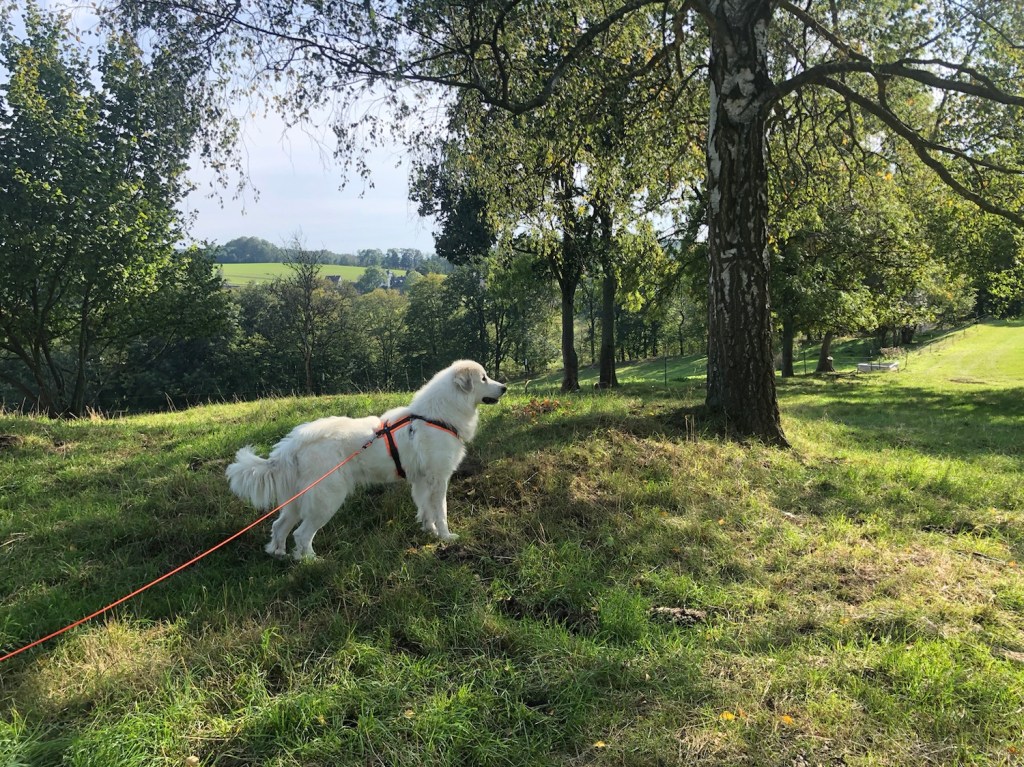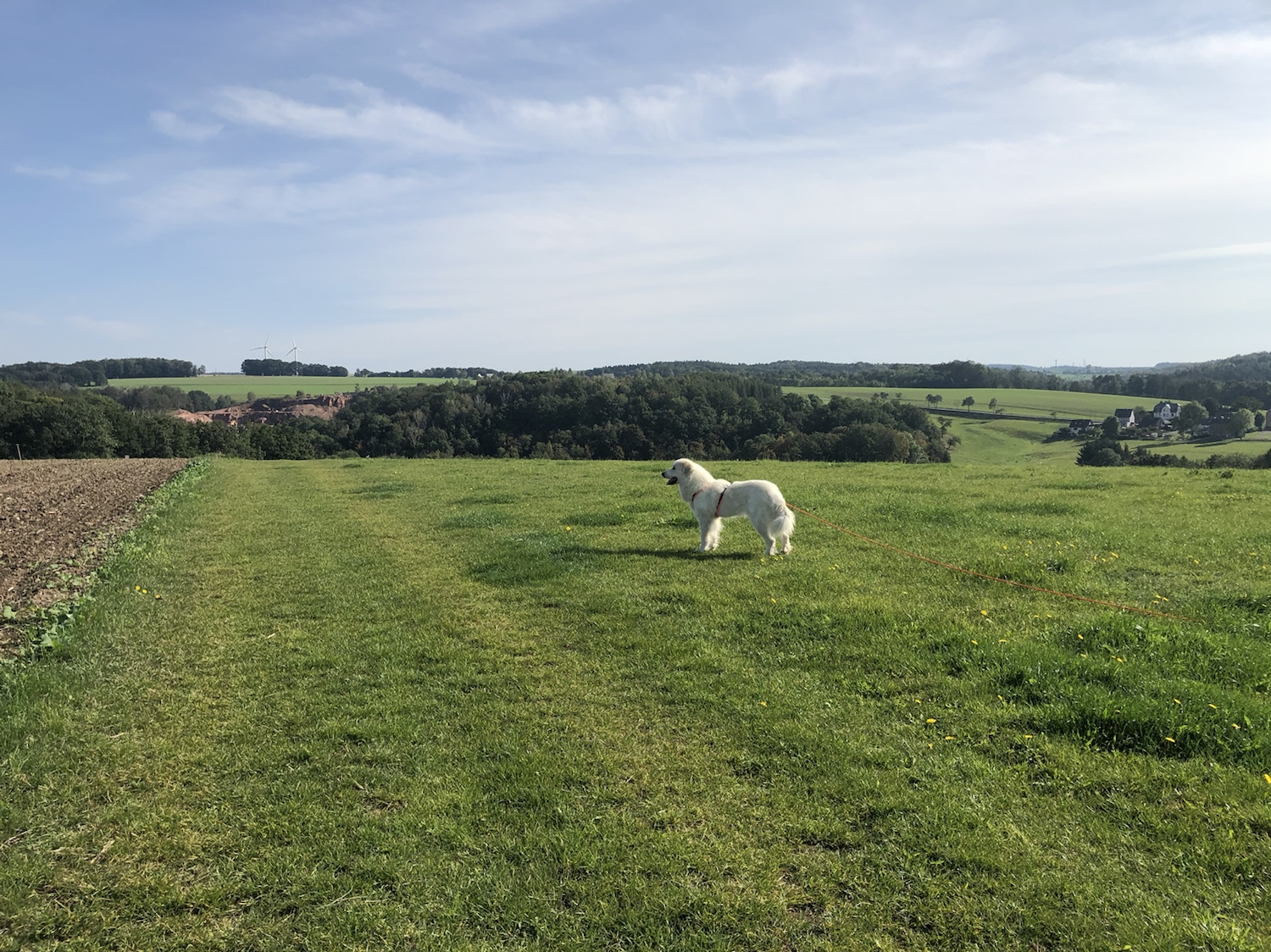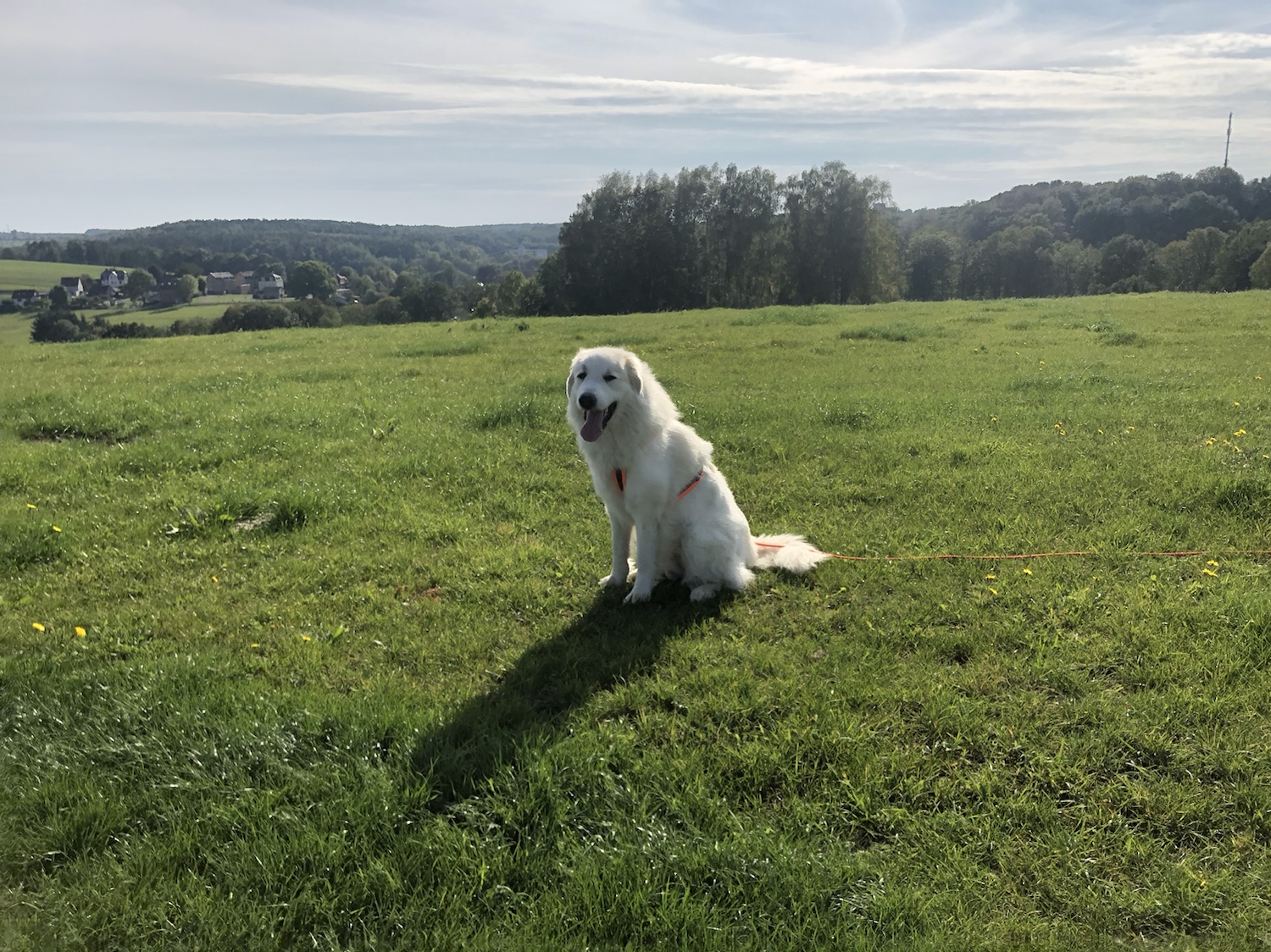 Dann sind wir gemütlich über meine große Feldwiese geschlendert und ich habe ganz viel geschnuffelt. Und wir haben geübt. Fernkontrolle! Ich habe ein feines „Steh“ gemacht. Aber erst beim ganzvielten Mal. Weiiil, ich konnte das gar nicht hören. Weiiil, ich habe diese Pyrischlappohren. Und wenn die ganz fest am kleinen sturen Pyriköpfchen anliegen, dann hört die Bella nichts 🐶🤷🏼♂️🐶. Ist so 🐶🤷🏼♂️🐶. Und dann habe ich ganz brav ein „Sitz“ gemacht. Gleich sofort! Ich bin lieb.