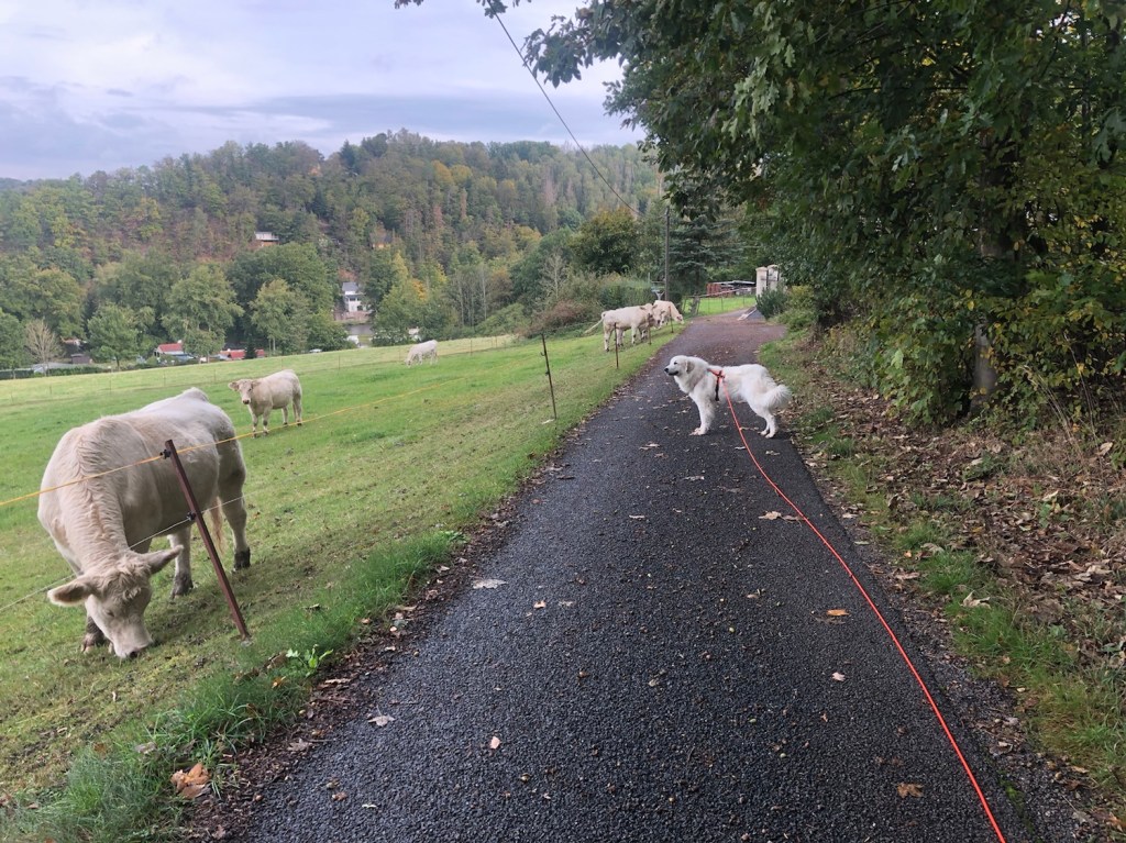 Über die große Wiese bin ich dann mit meinem großen Mensch wieder durch mein Wohngebiet nach Hause gelaufen. Ich durfte die ganze Zeit führen. Weiiil, ich bin doch eine Herdenschutzhündin. Eine Pyri! Und da kann ich selber Entscheidungen treffen. Da kann sich mein großer Mensch auf mich verlassen.