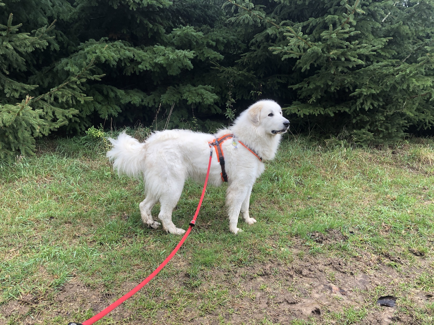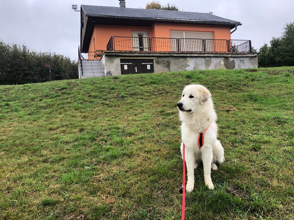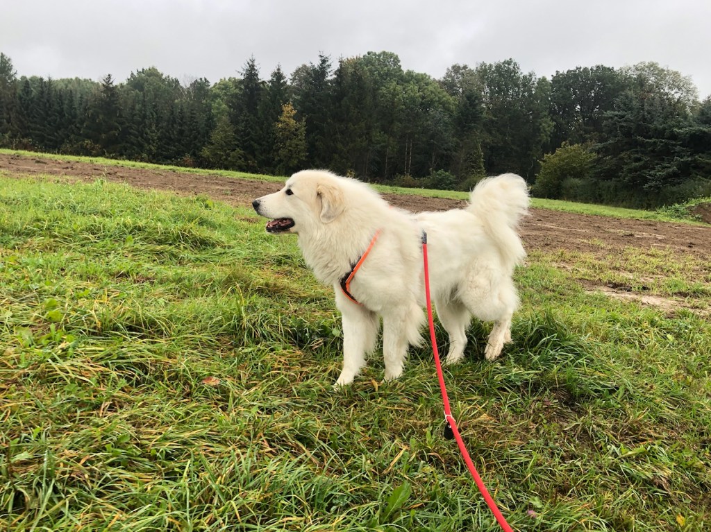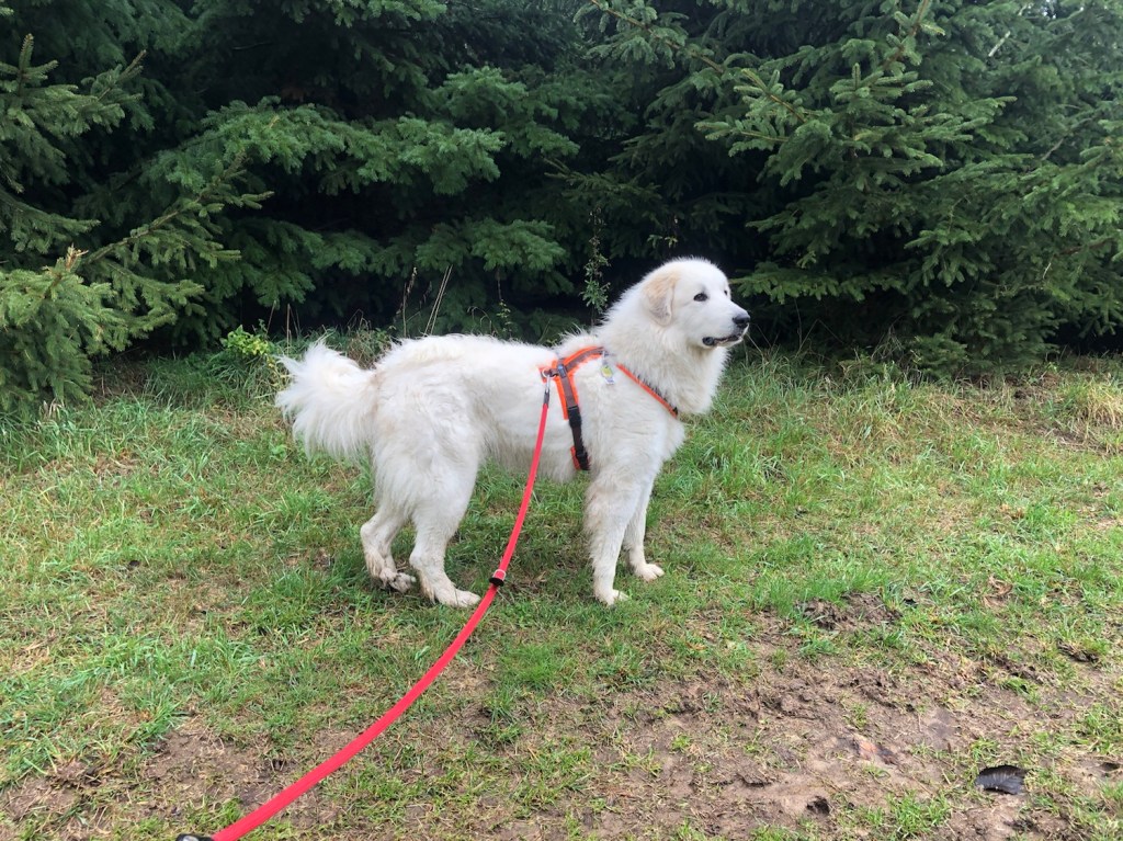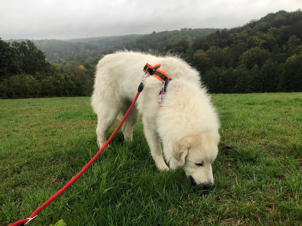 Am Skihaus habe ich leckeres frisches Gras geknabbert. Mein großer Mensch nennt mich da immer sein kleines Schäfchen. Ich bin aber eine Pyri. Eine große! Dann sind wir den Skihang runter und durch den Wald wieder zurück in mein Wohngebiet und nach Hause.