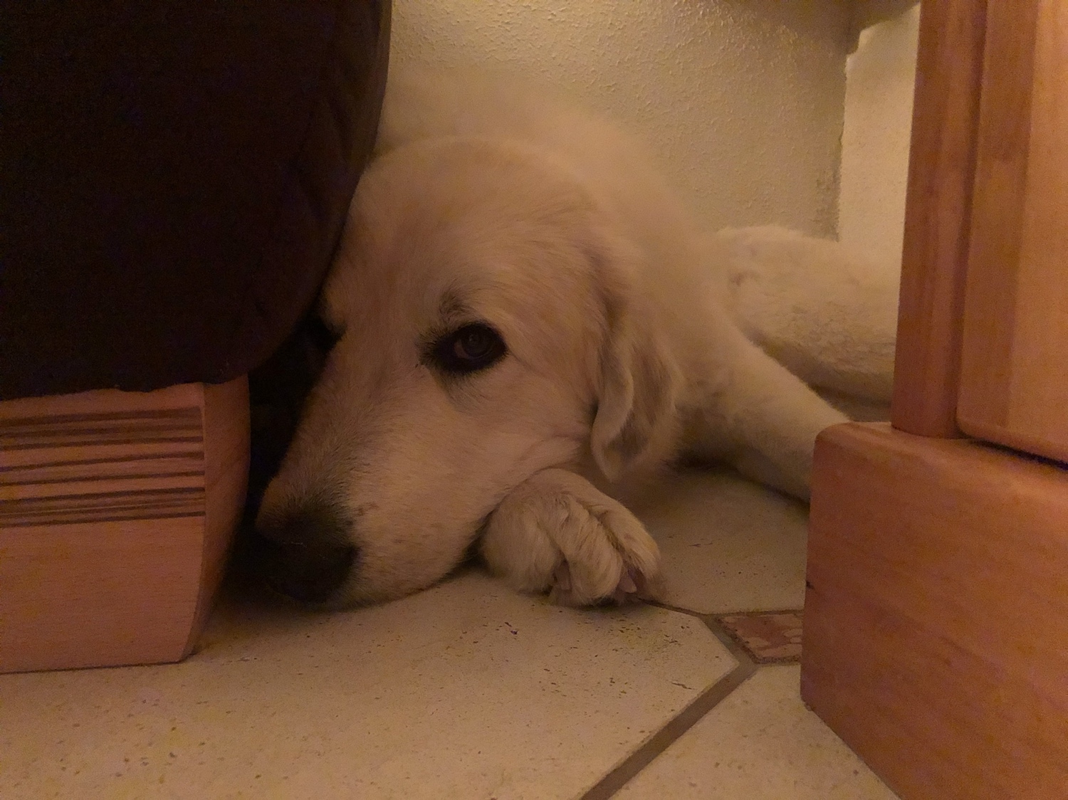In unserer Ferienwohnung habe ich mir dann einen schönen Platz gesucht und da habe ich schon mal geschlummert. Später sind meine Menschen dann in ihre Schlafzimmer gegangen. Ich bin in meine Schlummerecke gegangen. Die ist vor den Schlafzimmern. Damit ich alles bewachen kann. Und da ist es schön kühl. Und dann habe ich schön geschlummert. Gute Nacht! 🐶👸🏼