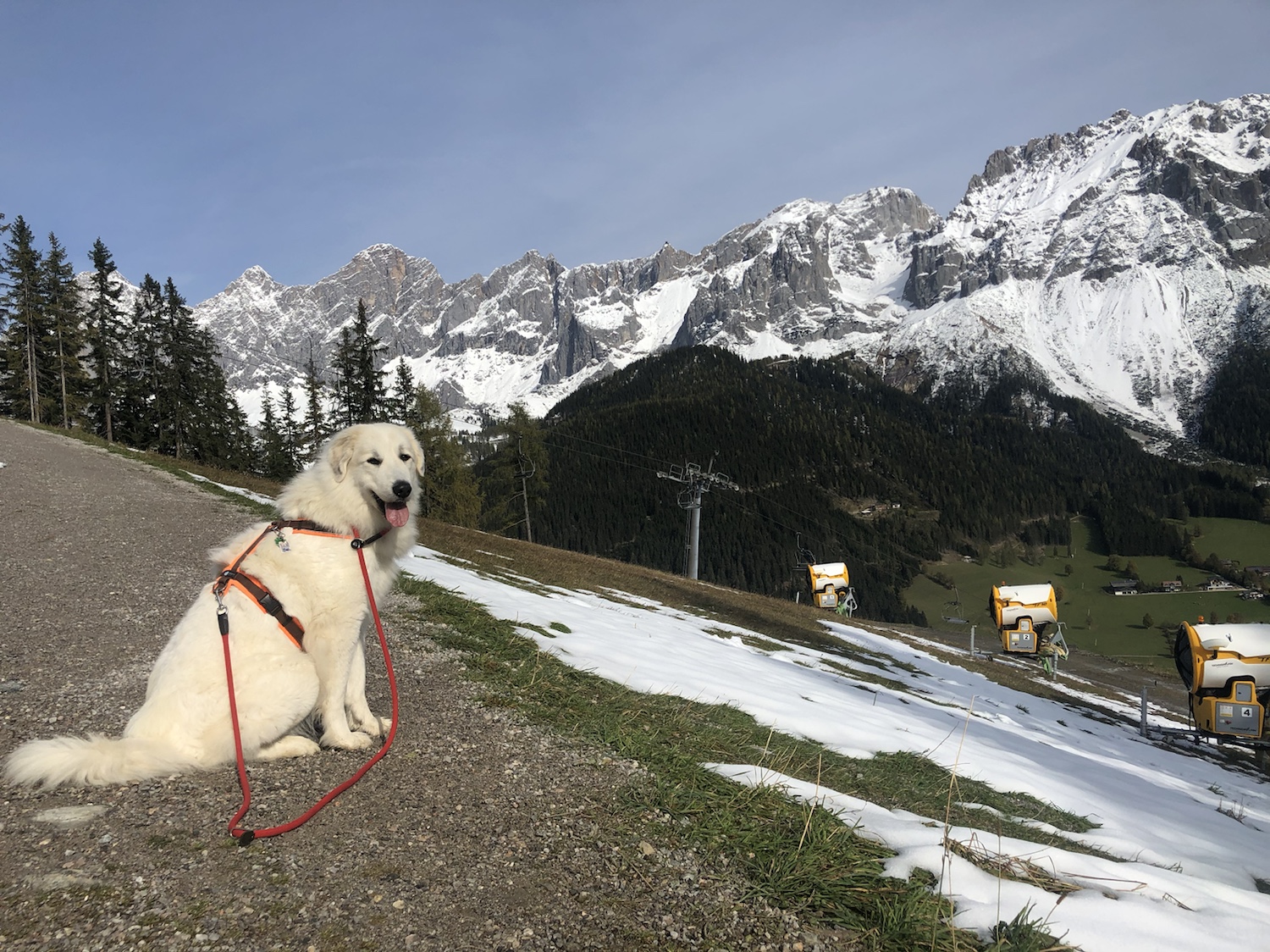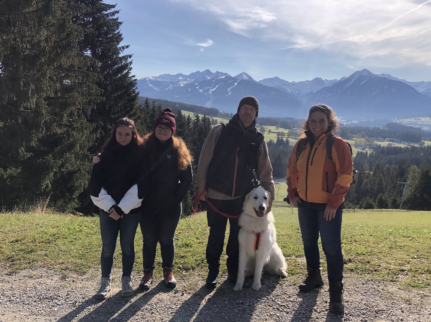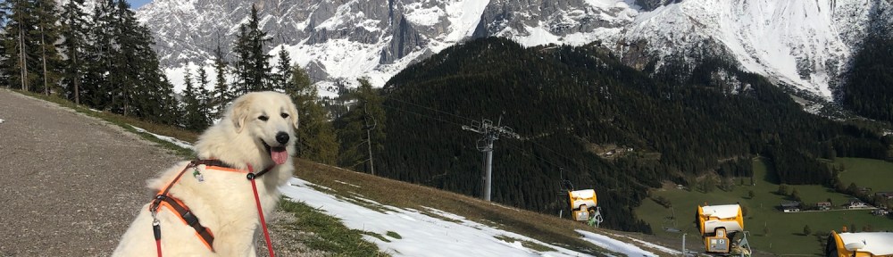 Dann sind wir wieder den Berg runtergewandert. Ich kenne den Weg. Vom vorigen Jahr. Deshalb bin ich auch immer vorneweg gewandert. Die Bella ist eine Berghündin. Ich kenne mich aus in den Bergen. Wir sind dann bis zu einer Alm gelaufen. Die heißt „Sonnenalm“, weiiil, da scheint immer meine liebe Sonne. Heute auch. Meine liebe Sonne ist nämlich mit mir zusammen gewandert.