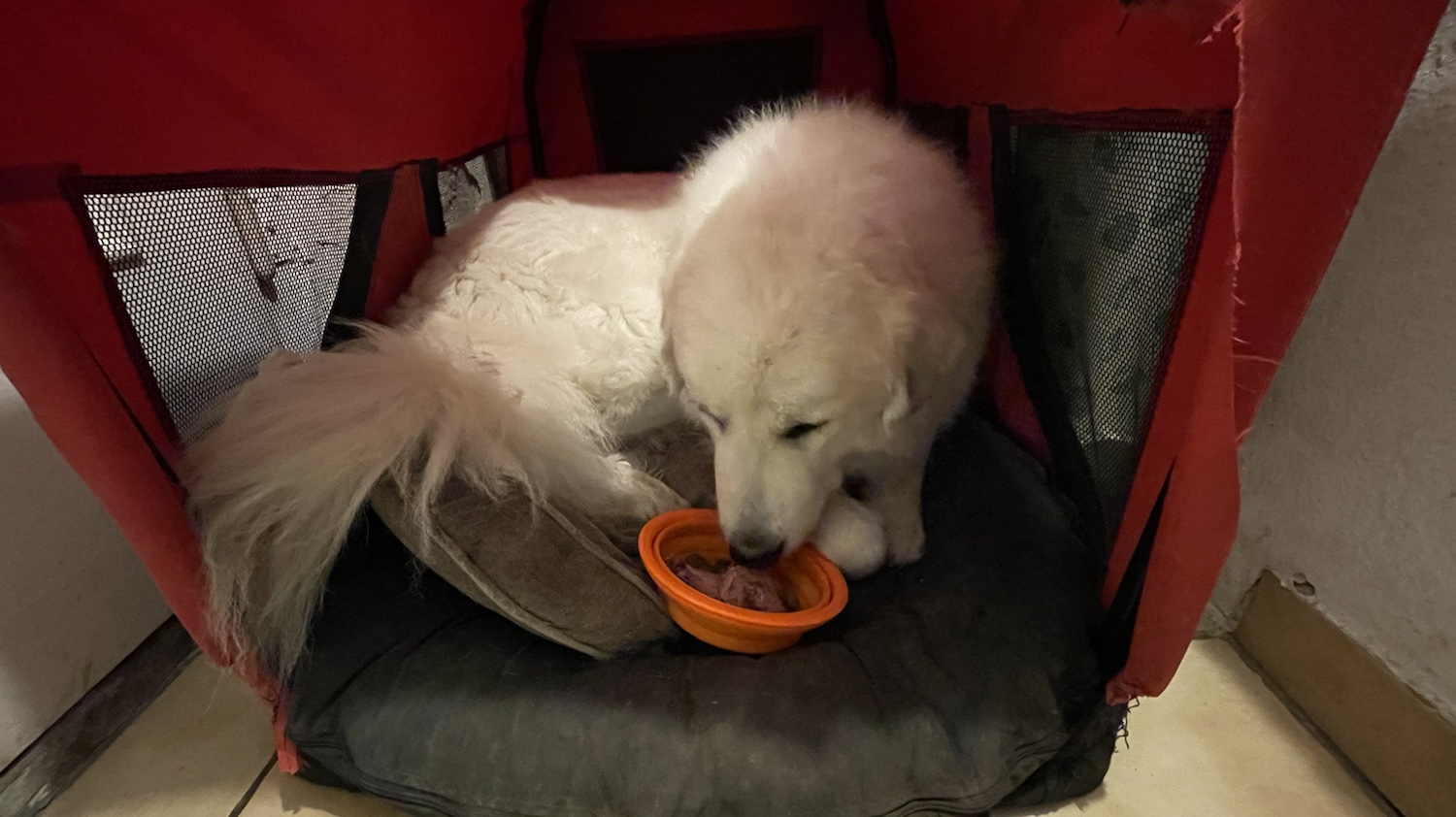 Zu Hause bin ich mit meinem großen Mensch gleich in meine Kellerwohnung gegangen. Aber ich habe nichts gefuttert. Nur meine Knabbereien für die Nacht hat mir mein großer Mensch dann noch gegeben. Da habe ich geknabbert. Und dann ganz schnell geschlummert. Gute Nacht! 🐶👸🏼