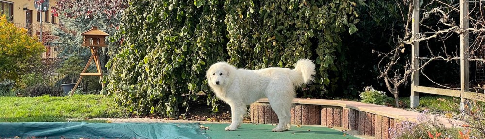 Weiiil, heute war es ganz spannend. Beim Nachbarn hinter meinem großen Zaun, da waren heute viele Menschen. Die haben gebaut. Und da mußte ich ja immer mal gucken und schimpfen. Damit die keinen Blödsinn machen. Die Bella paßt da auf. Jawoll! Ich bin eine Herdenschutzhündin, eine Pyri bin ich! Mit champagnercremeweißfarbenem Pyrifell. Das sieht sehr schön aus. So!