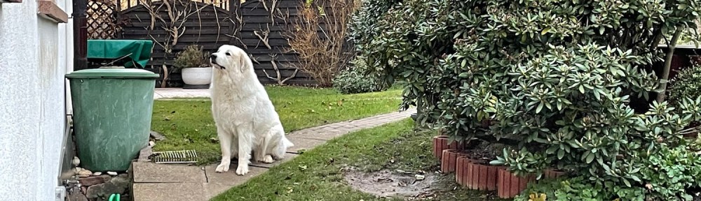 Wir haben heute früh ganz gemütlich zusammen gefrühstücksfuttert, mein großer Mensch und ich, seine Bella. Erst habe ich mein Leberwurschtbrot mit Leberwurscht drauf gefuttert und danach mein leckeres Frühstücksfleisch. Heute gab es wieder Rindviehch. Und dann habe ich nochmal geschlummert. Kurz. Dann wollte ich raus und habe meine Menschen gerufen. Meine große Menschin hat mich später auch raus in meinen Garten, zu meiner Arbeit, gelassen.