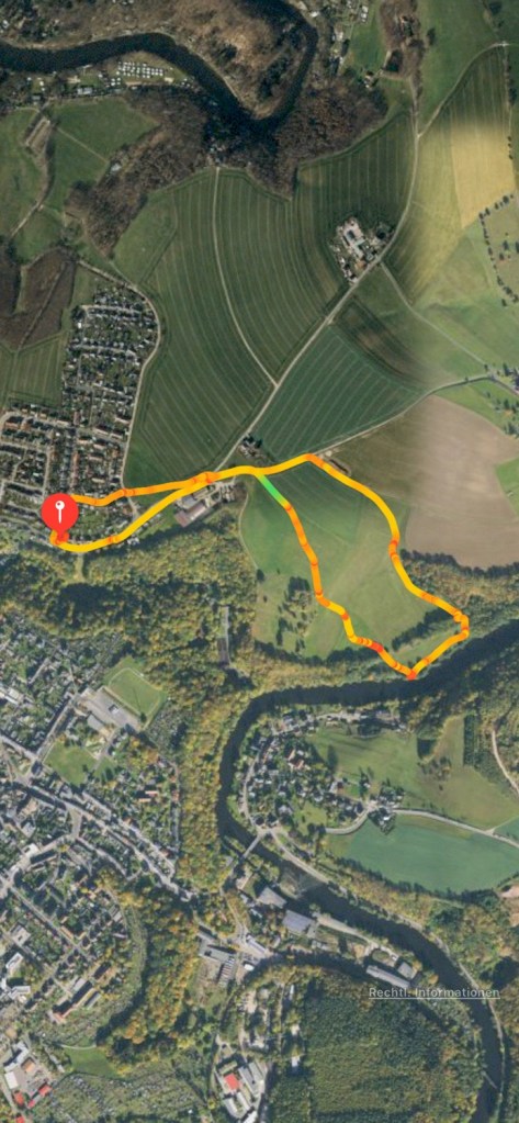Wir sind wieder zum großen und kleinen Feldweg und diesmal über die große Wiese. Runter bis zum Rad-Wanderweg. Da war gerade jemand hingefallen. Wir sind gleich hin und haben geholfen. Ich habe aber nur geguggt. Das war ganz aufregend. War aber nichts schlimmes passiert.