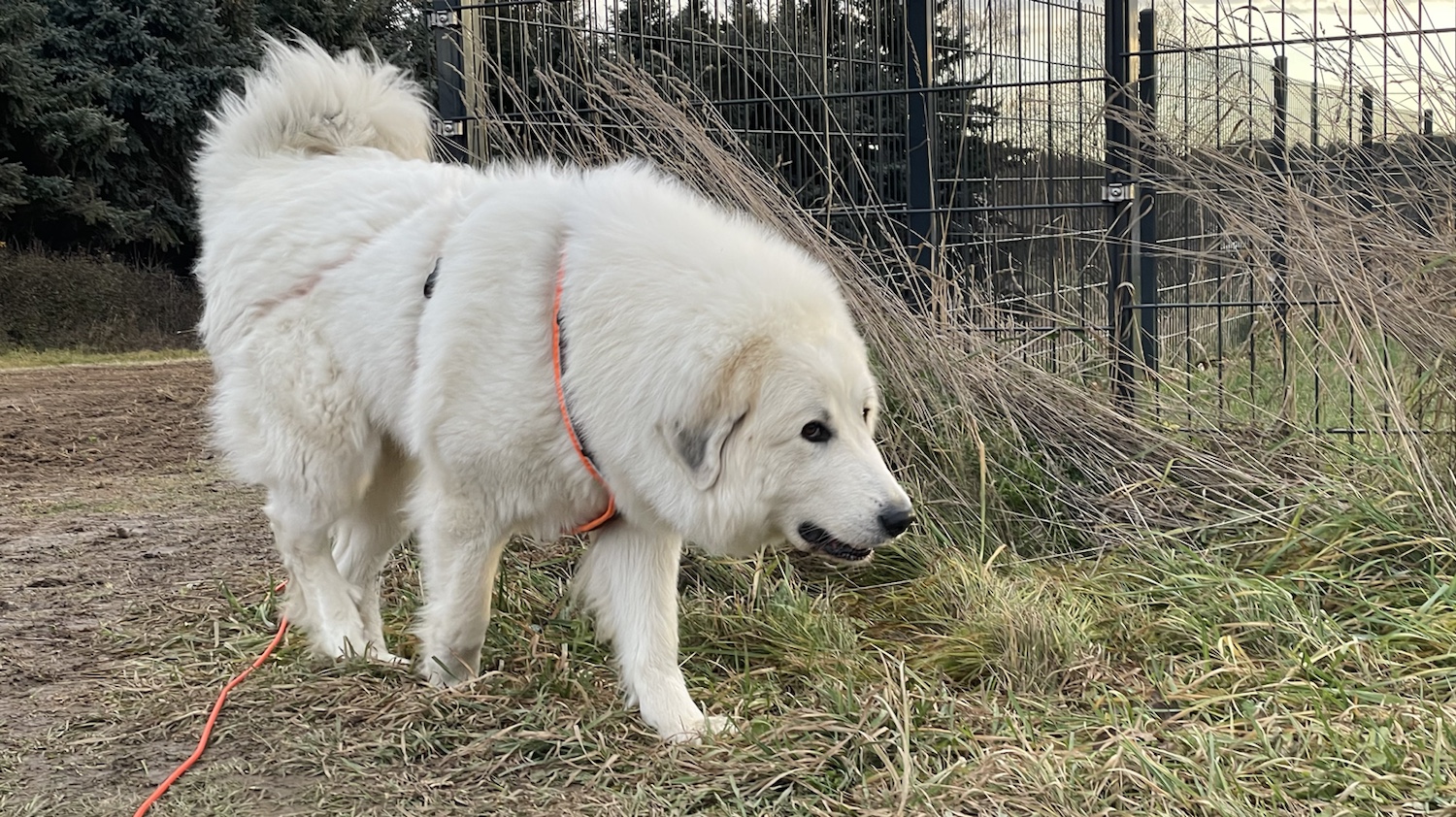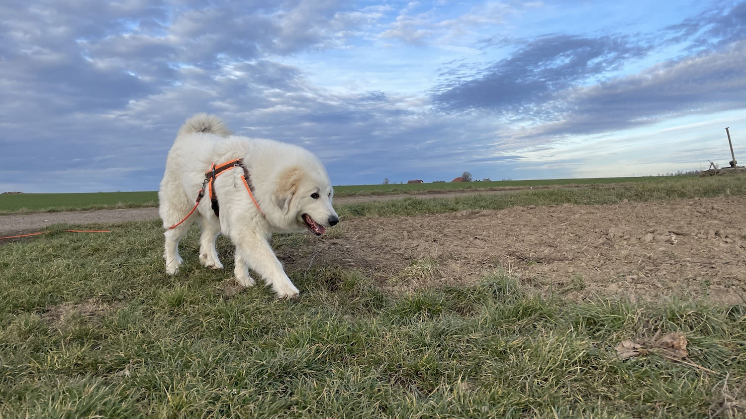 Nachmittags ist mein großer Mensch nochmal mit mir spazieren gegangen. Zum großen Feldweg und dann auf den kleinen Feldweg. Da sind wir wieder um das ganze Feld geschlendert. Heute habe ich auch die Ziegen gesehen. Die sind aber gleich weggerannt. Weiiil, ich bin doch so gewaltig. Aber ich bin ganz lieb. Ich bin dann gleich noch zu den zwei Schafen gerannt. Die sind aber auch abgehauen. Mein großer Mensch sagt, ich bin zu wild, wenn ich da hinrenne. Ich will aber doch spielen. Die müssen keine Angst vor mir haben ich bin doch eine Pyri.
