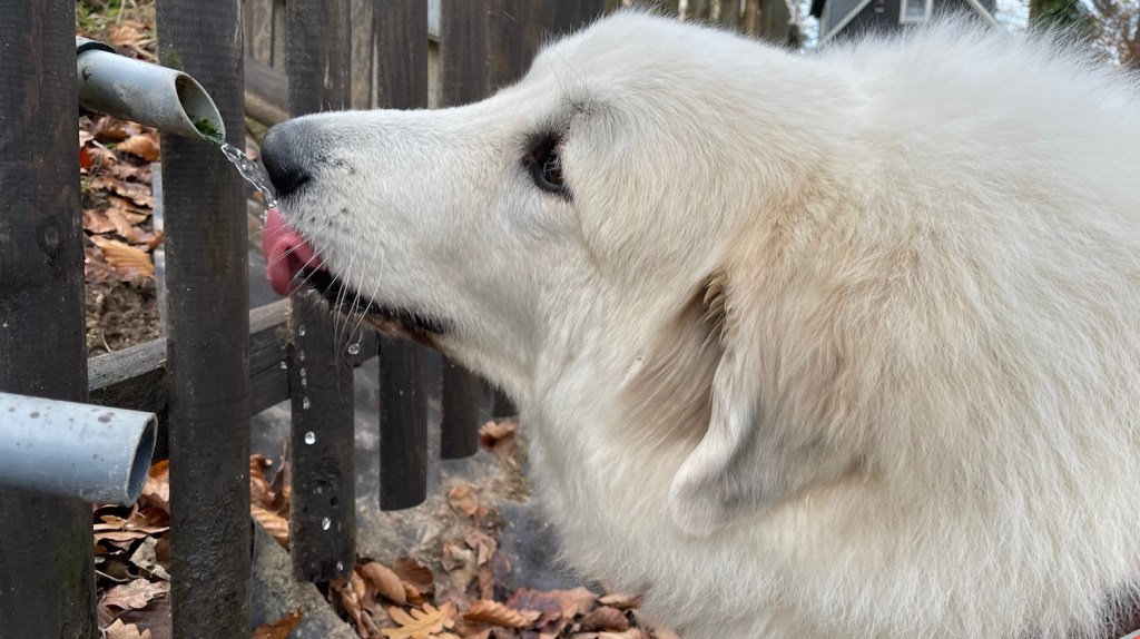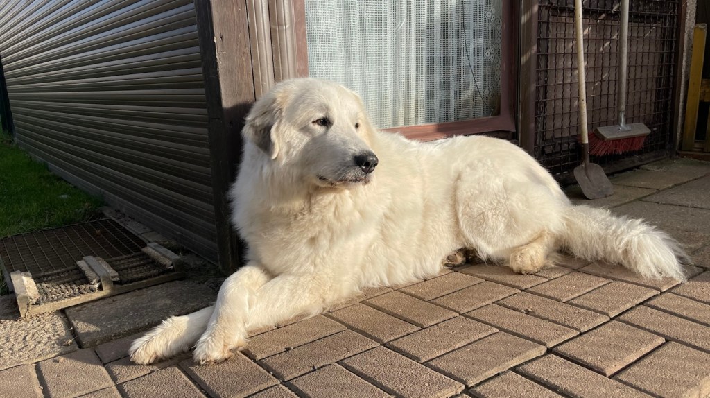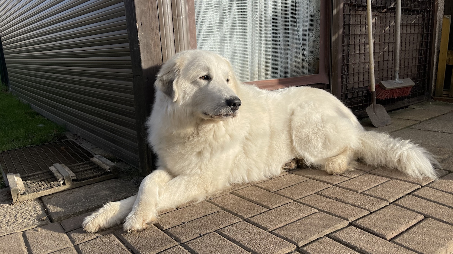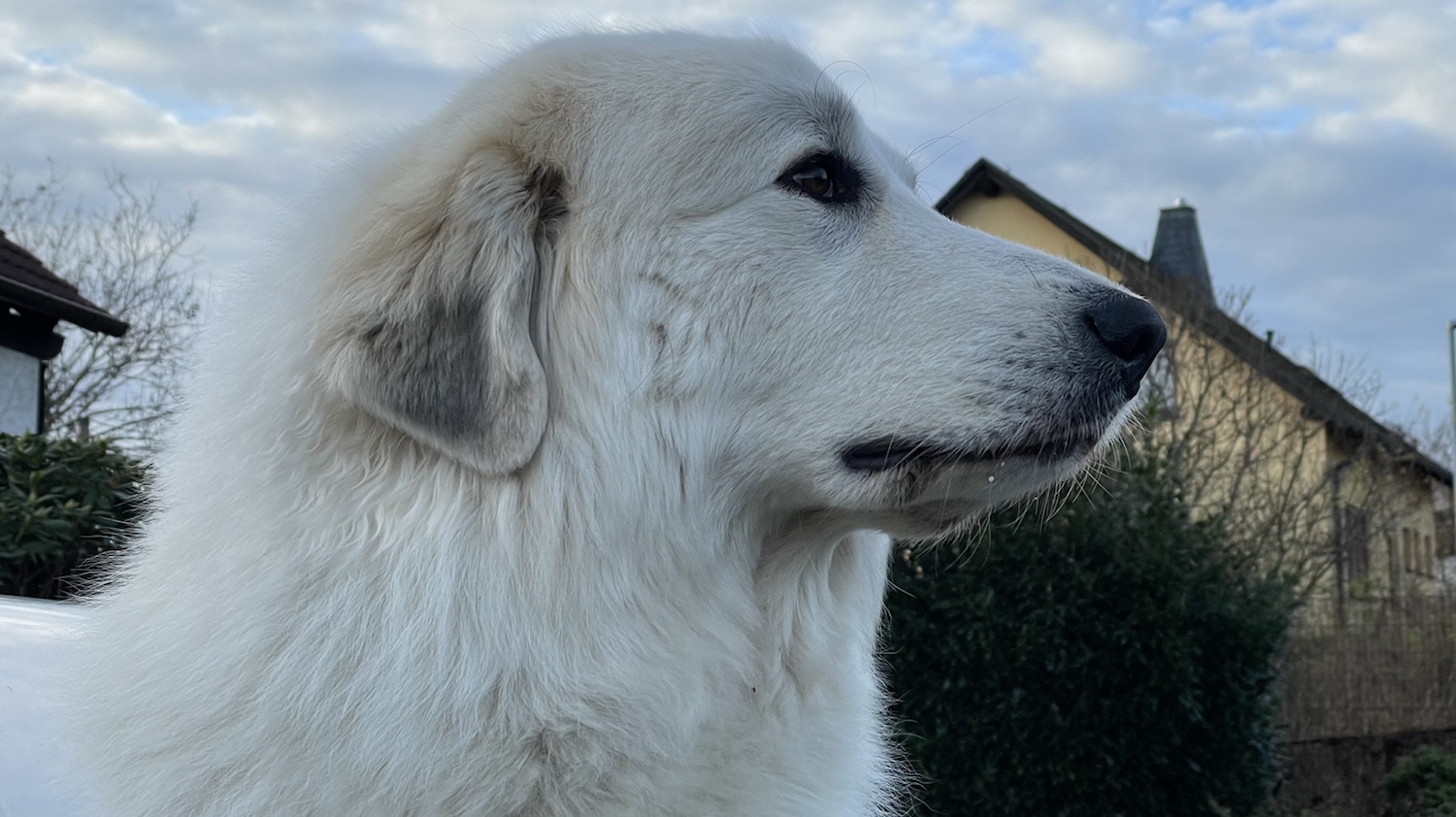 Zu Hause gab es dann schon bald Abendfutter. Heute mit Haferflocken. Da war ich aber erstmal irritiert. Und da mußte ich meinen großen Mensch von seiner Kellertreppe holen. Weiiil, das Futter war anders als sonst. Mein großer Mensch hat mir dann alles genau erklärt, daß da mein Rindviehchermix unter den Haferflocken versteckt ist und das alles für mich ist und ich das essen kann. Und dann mußte sich mein großer Mensch mit zu mir setzen und dann habe ich auch gefuttert. Hat alles ganz lecker geschmeckt. Aber ich muß über alles genau informiert werden. Ich bin doch eine Herdenschutzhündin. Ich futtere doch nicht einfach alles was rumsteht. Ich doch nicht.
