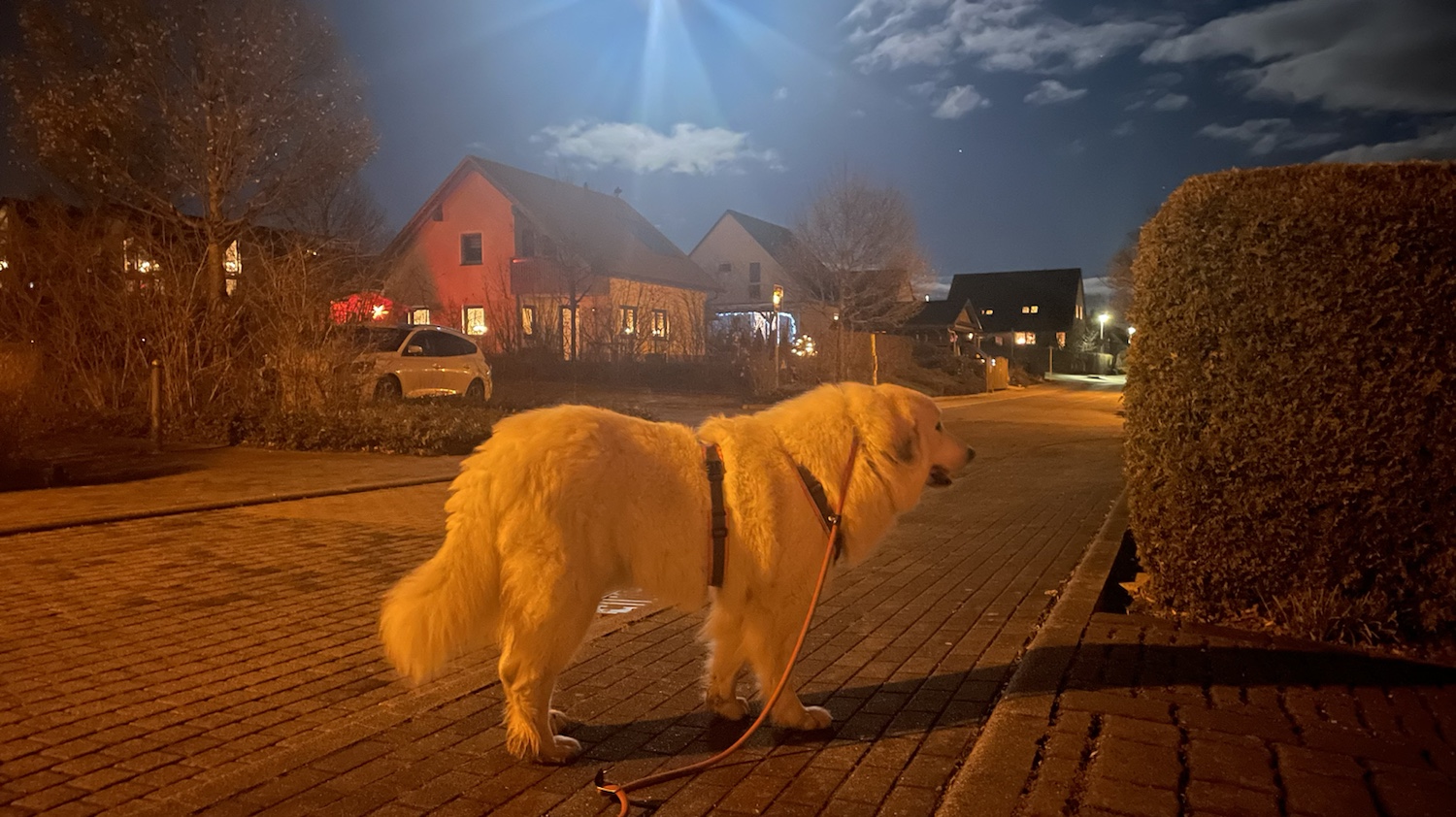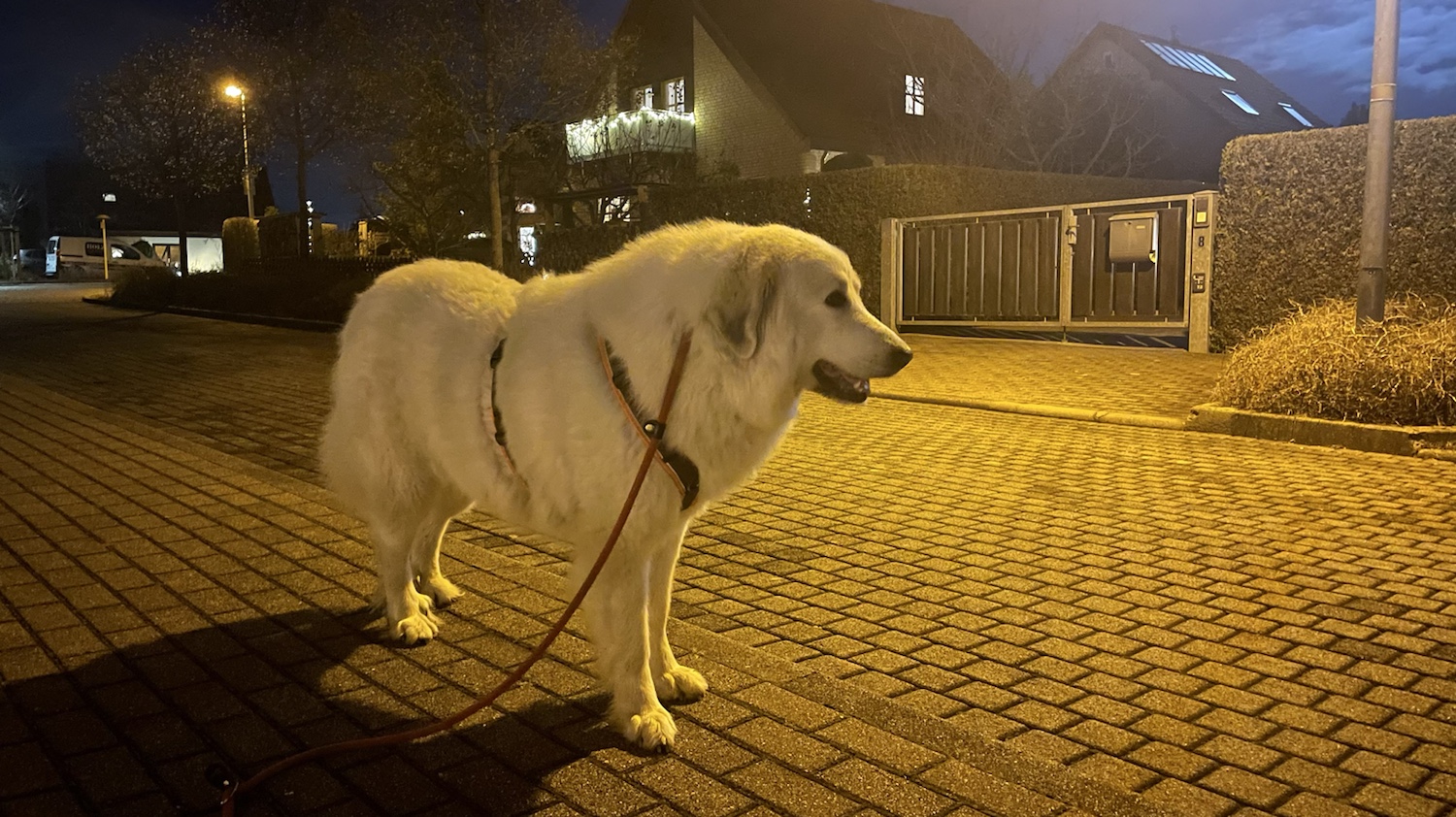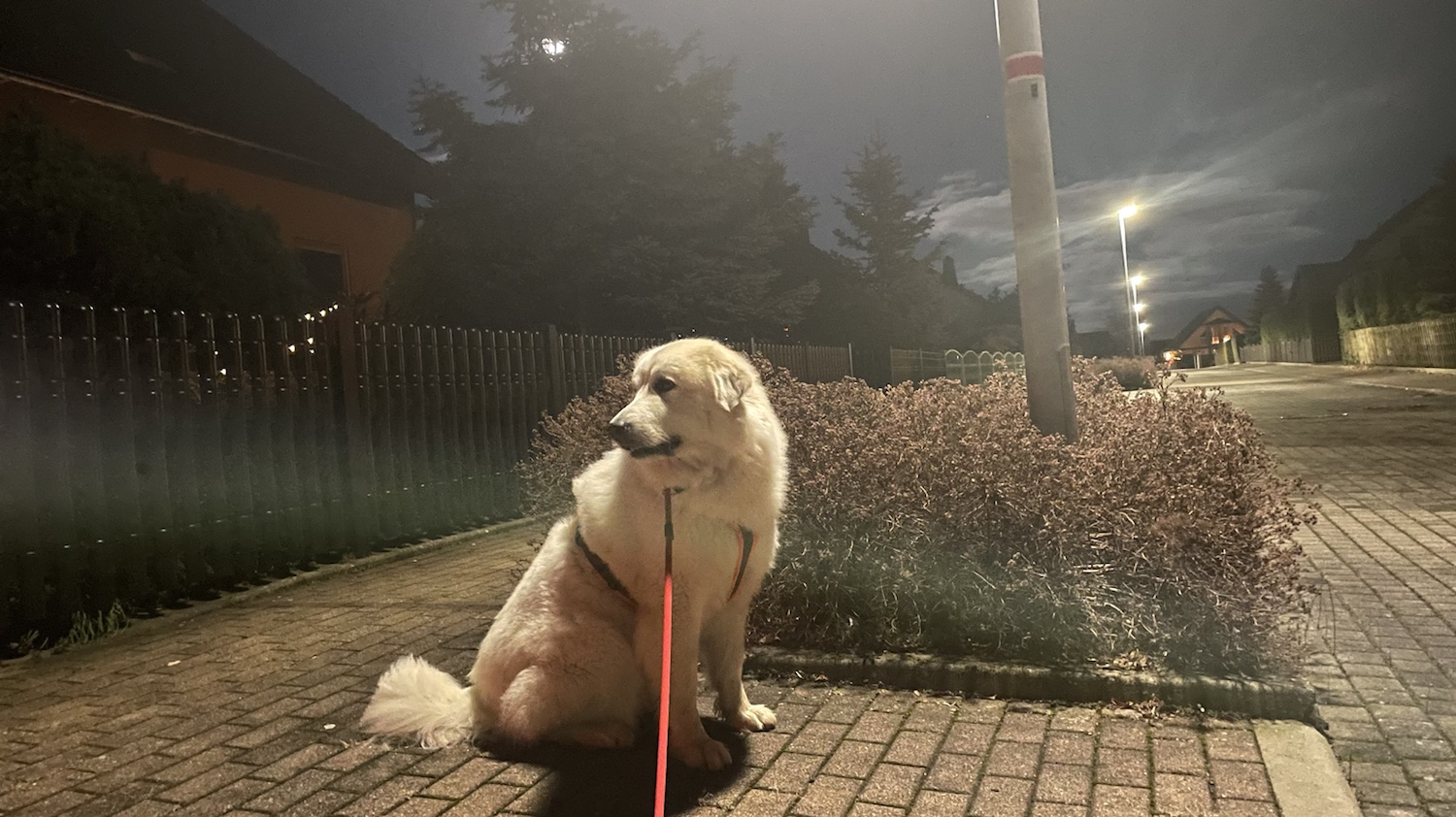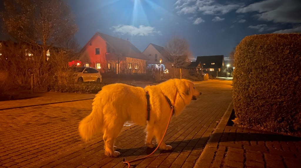 Mein großer Mensch hat mich wie immer abendgefüttert. In meiner Kellerwohnung und hinterher bin ich gleich wieder raus in meinen Garten und habe auf meinen Abendspaziergang gewartet.