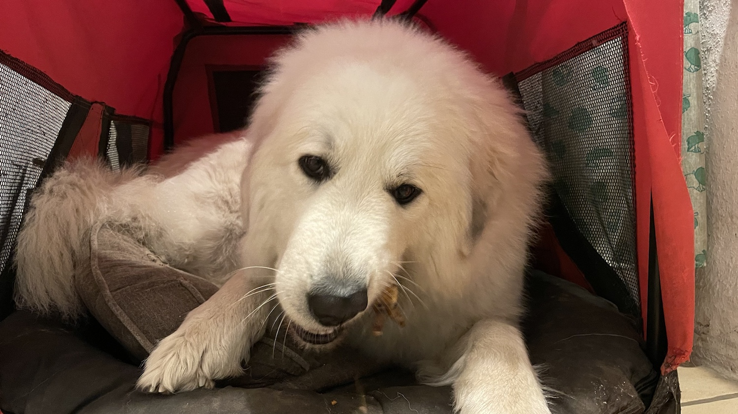 Zu Hause sind wir alle gleich in meine Kellerwohnung gegangen. Meine große Menschenschwester ist auch noch dazugekommen. Und alle haben mit mir gekuschelt. Mein großer Mensch hat inzwischen meine Knabbereien fertig gemacht und damit habe ich mich dann in mein kleines rotes Ferienhäuschen gekuschelt, geknabbert und dann geschlummert. Gute Nacht! 🐶👸🏼