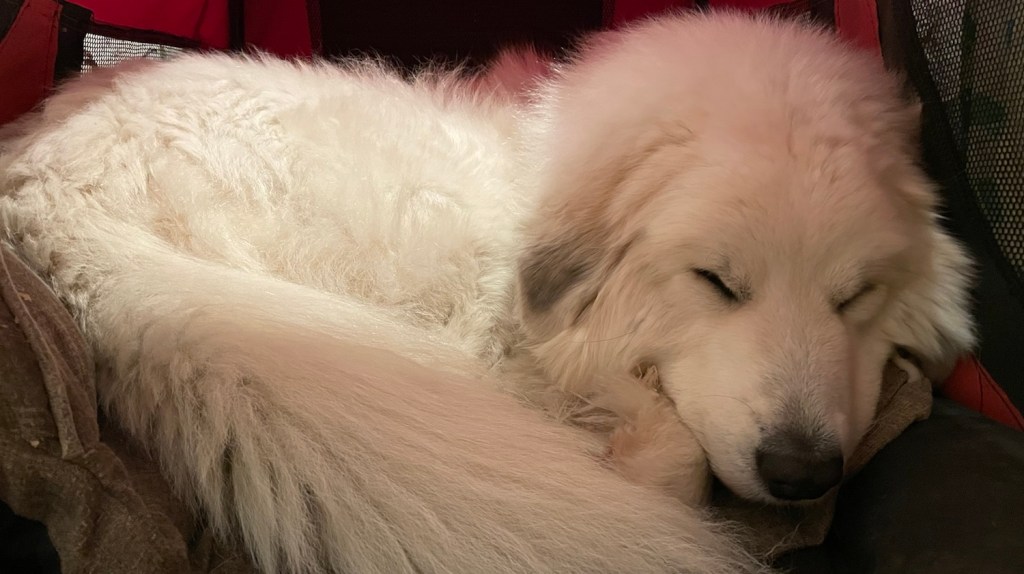 Heute früh mußte mich mein großer Mensch zum Frühstücksfuttern wecken. Weiiil, ich habe noch ganz fest geschlummert. In meinem kleinen roten Ferienhäuschen drin. Da drin habe ich dann auch gleich gefrühstücksfuttert. Und danach nochmal geschlummert.