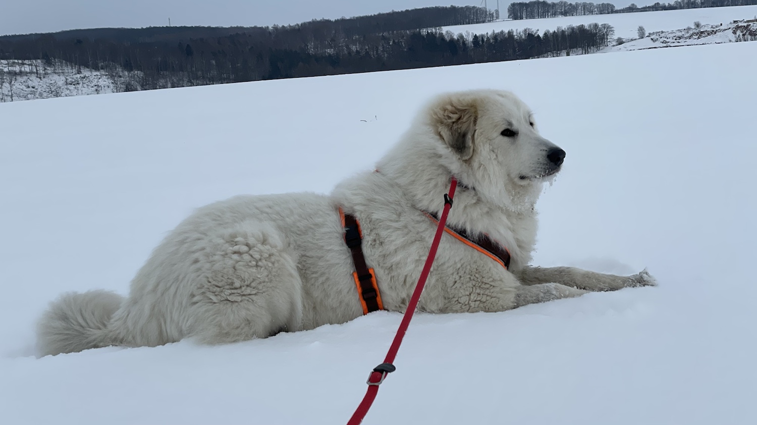 Dann sind wir über den großen Feldweg aber wieder nach Hause gewandert. Weiiil, es war schon spät. Die Bella hat ja die kleine Runde ganz sehr vergrößert. Aber das hat sich gelohnt. Und mein großer Mensch hat mich ganz sehr gelobt, weiiil, ich habe so eine schöne Runde ausgesucht. Tja, eine Herdenschutzhündin kann das eben. Ich bin eine Pyri!
