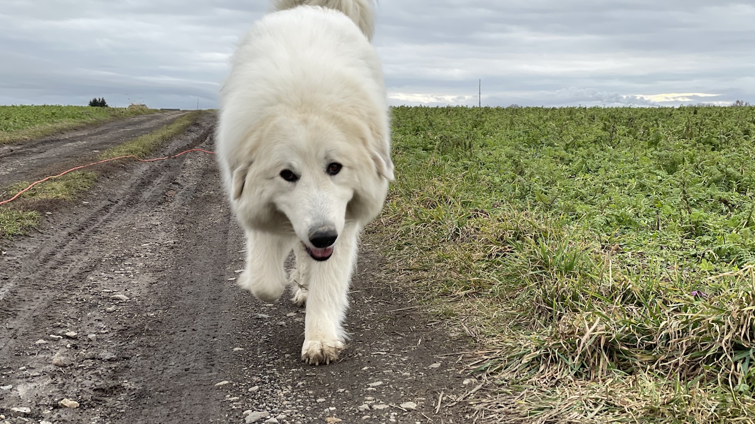 Ich habe meinen großen Mensch erstmal an der großen Straße lang zum Feldweg geführt. Der, der zum Waldrand führt. Dort wohnen der Schäferhund und die Kangalin. Und nebenan der kleine freche Hund. Es war aber niemand da. Wir sind deshalb am Waldrand gleich weiter über die Wiese und da habe ich meinen großen Mensch dann die Straße lang bei der Frau Dobermann vorbei zum Parkplatz geführt.