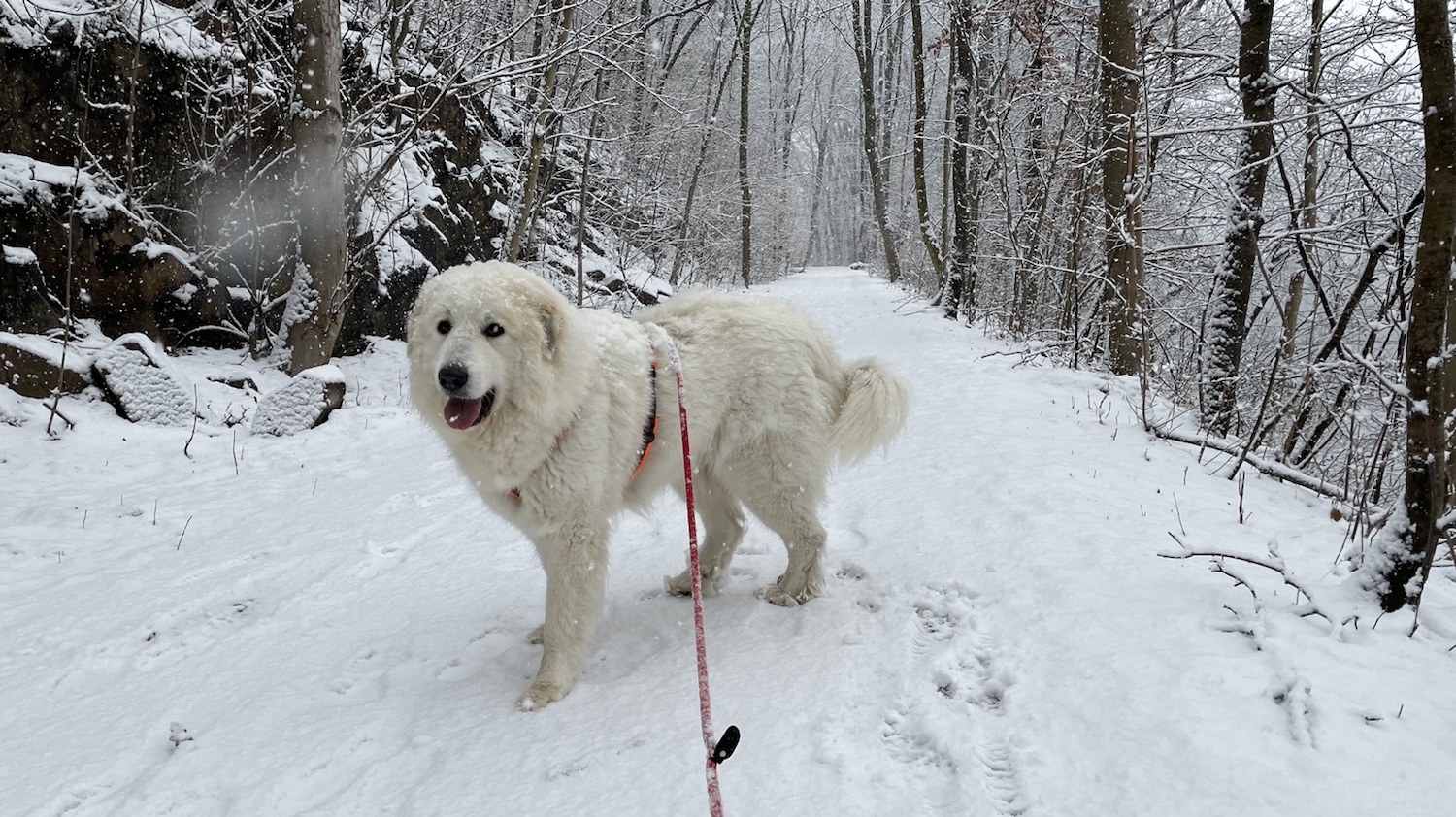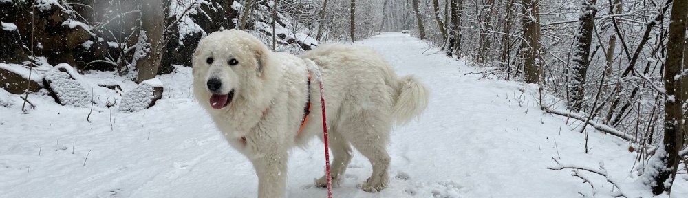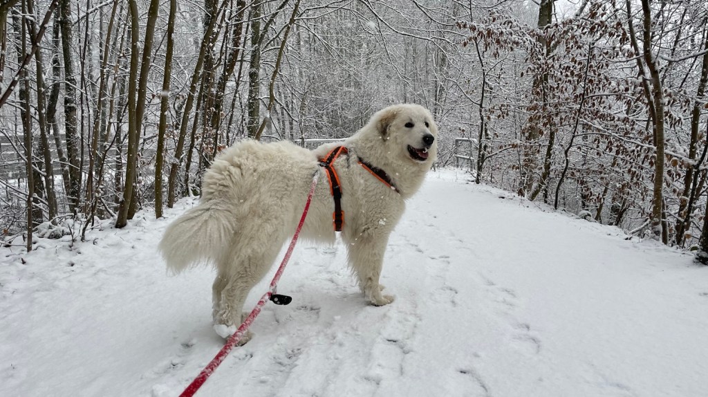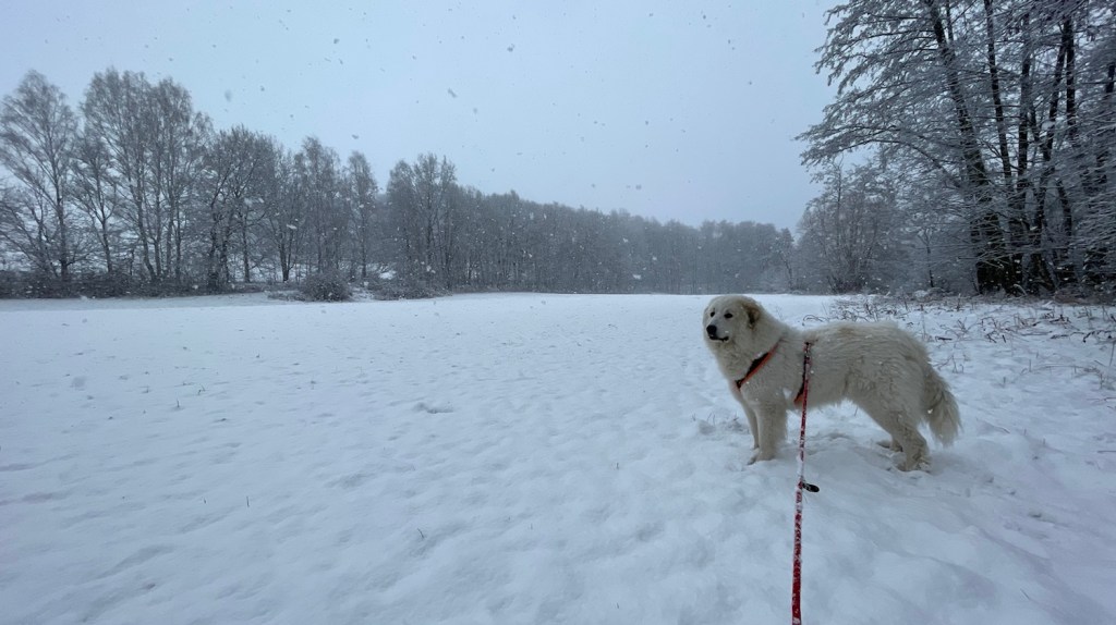 Nachmittags bin ich dann nochmal mit meinem großen Mensch spazieren gewesen. Durch die Siedlung sind wir gewandert. Und ich habe schön geschnuffelt. Im Schnee. Das kann ich. Die Frau Nachbarin haben wir auch mitgenommen. Da habe ich wieder schön gekuschelt.