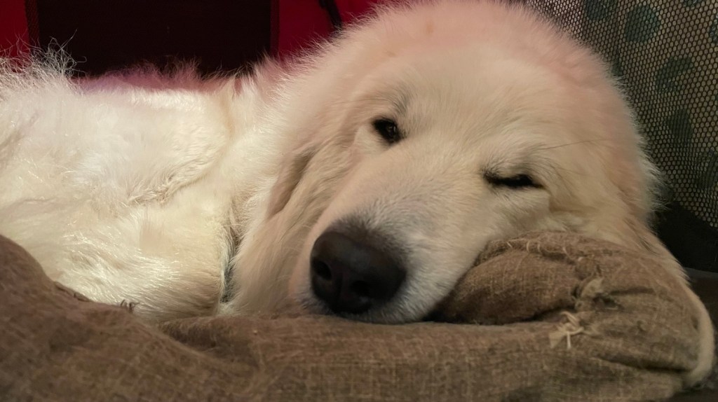 Dann habe ich mich schön in mein kleines rotes Ferienhäuschen gekuschelt. Vorher hat mir mein großer Mensch noch meine Pyrizähnchen geputzt. Da habe ich ganz brav mitgemacht. Mein großer Mensch war noch bei mir und hat mein kleines stures Pyriköpfchen gestreichelt und ich habe auch noch was zum Knabbern bekommen. Und dann habe ich schön geschlummert. Gute Nacht! 🐶👸🏼