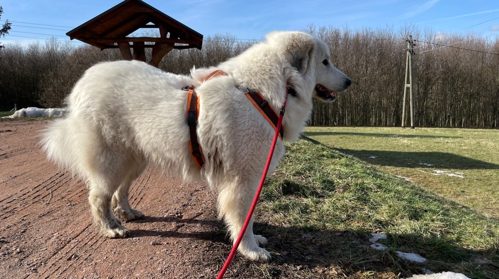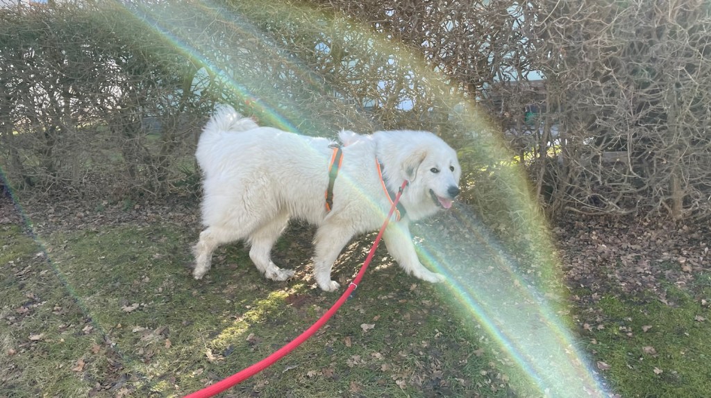 Da sind wir dann nach Hause gegangen. Mein großer Mensch hatte Ärger. Das habe ich mal wieder gemerkt. Der wollte auch gar nicht mit mir kuscheln. Auf der Rehwiese habe ich auch wieder einen dicken Pyrikopf gehabt und nicht gehörcht. Und da mußte ich dann brav an der kurzen Führleine laufen.