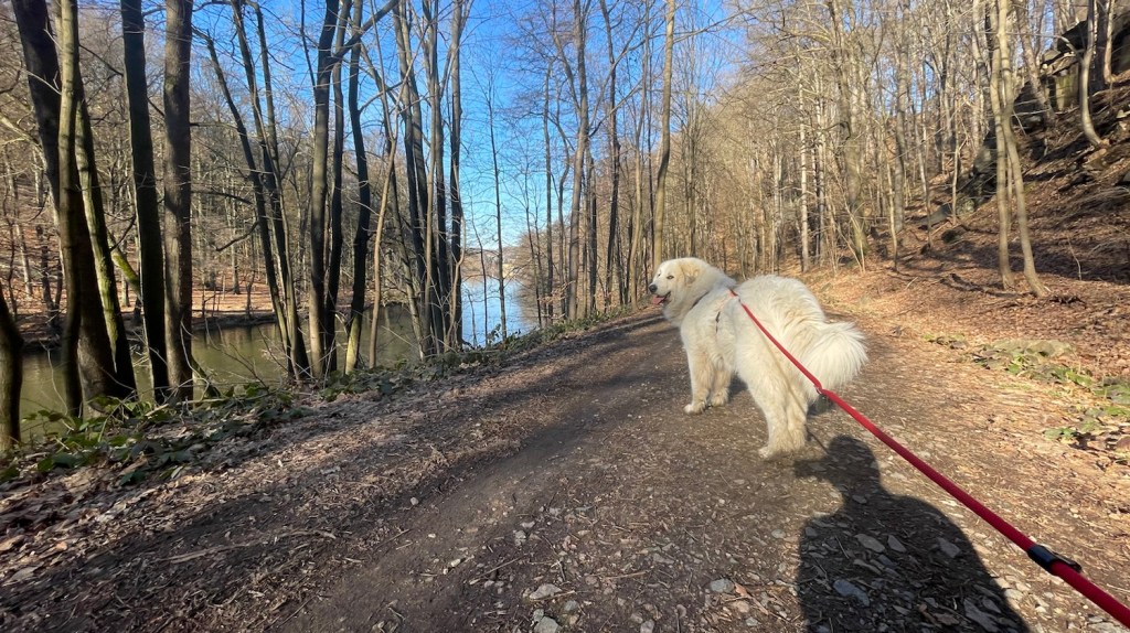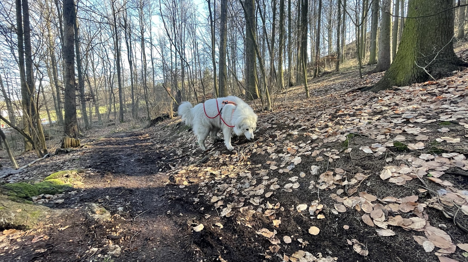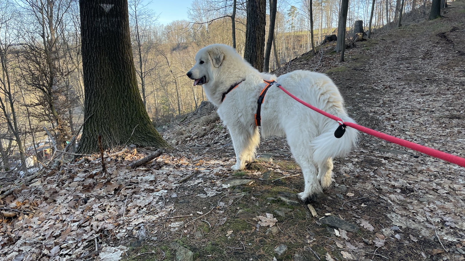 Ich habe dann durch den Wald geführt, weiiil, ich kenne den Weg. Hier sind wir schon langgelaufen. Und die Bella ist eine Pyri. Ich bin ganz schön ziemlich schlau. Und sehr schön. Wie meine Mami, die Ivy. Die ist auch eine Prinzessin Idefix und auch sehr schön.