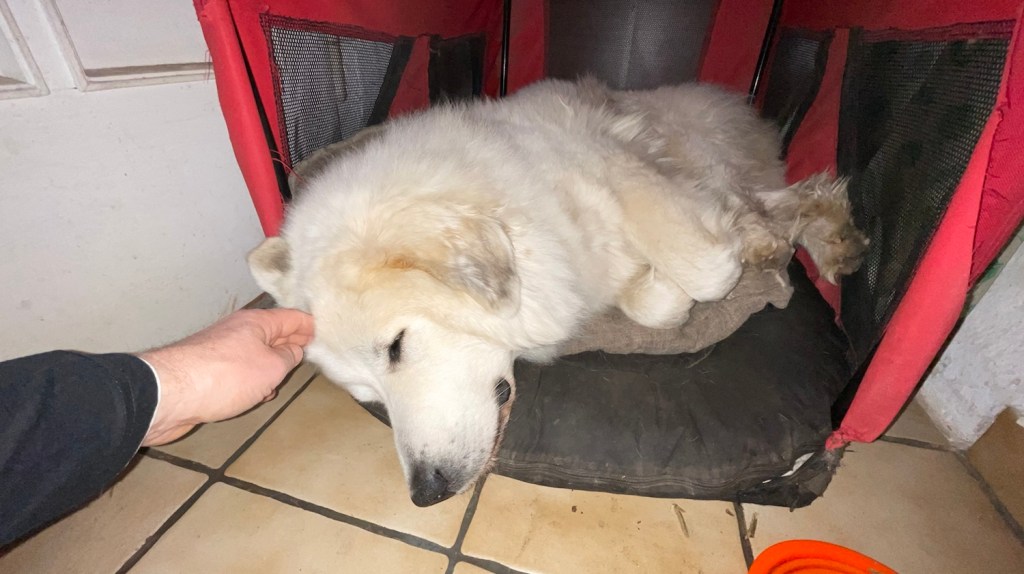 Zu Hause sind wir gleich in meine Kellerwohnung gegangen. Da waren meine große Menschin und auch meine beiden Menschenschwestern. Aber ich habe mich gleich hingekuschelt. Und dann gab es Abendfutter. Zuerst wollte ich gar nichts futtern, weiiil, ich hatte ja beim Abendspaziergang schon ein Trockenfutterpicknick gemacht. Aber dann habe ich doch noch mein Rindviehcherfleisch gefuttert.