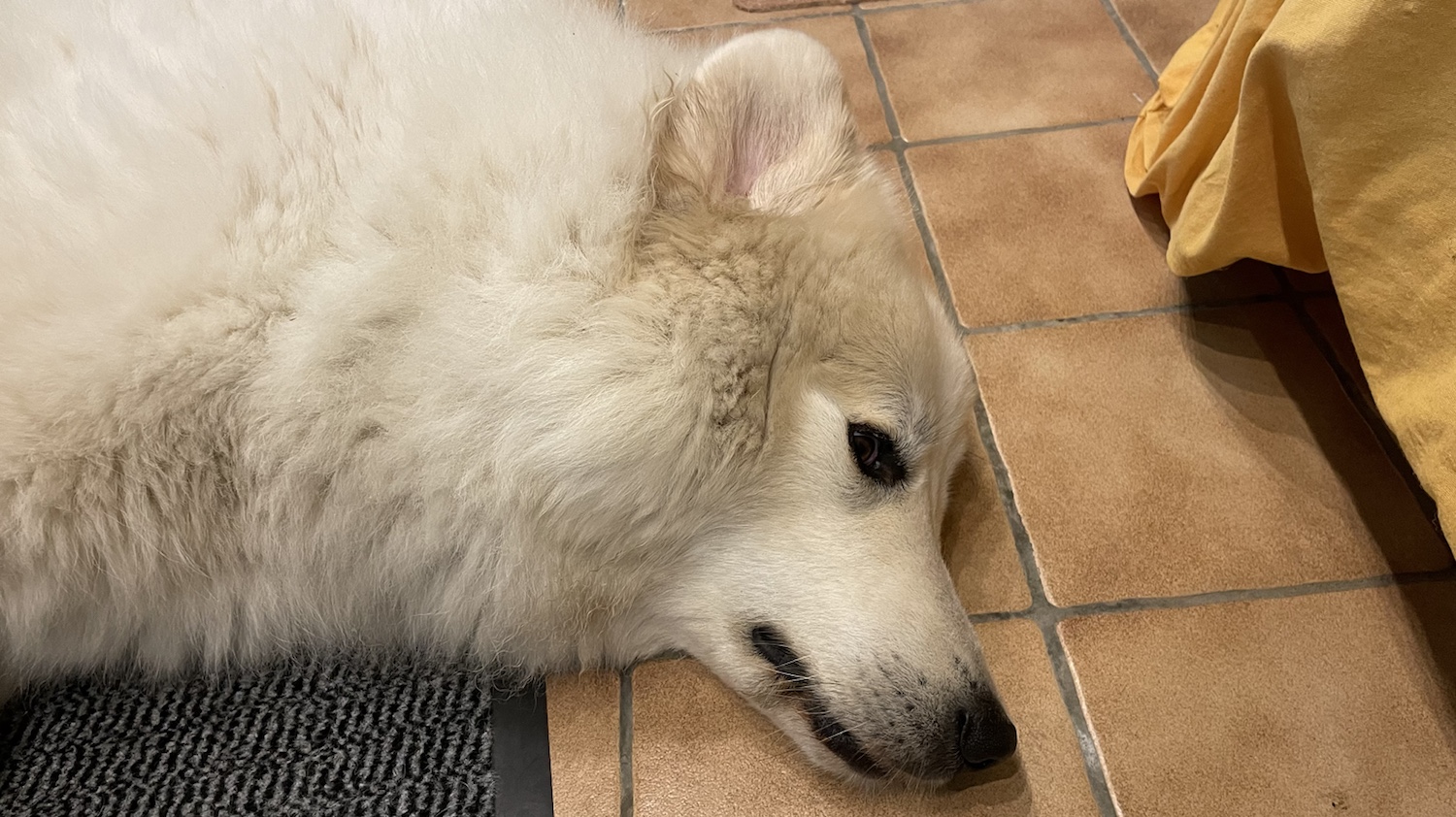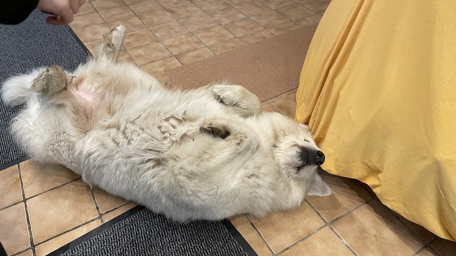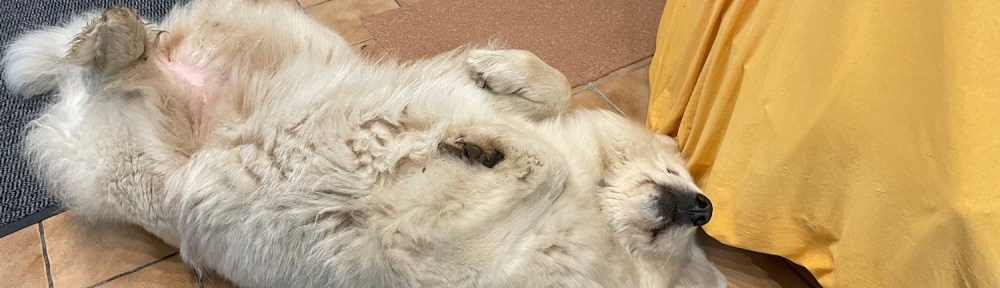 Aber unseren Abendspaziergang haben wir trotzdem gemacht. Mein großer Mensch und ich, seine Bella. Es hat ganz sehr geregenwettert. Aber wir machen trotzdem einen Abendspaziergang. Ich bin nämlich eine wunderschöne Pyrenäenbergprinzessin. Herdenschutzhündin. Pyrenäenberghündin. Eine Pyri bin ich. Eine ganz liebe. Jawoll!