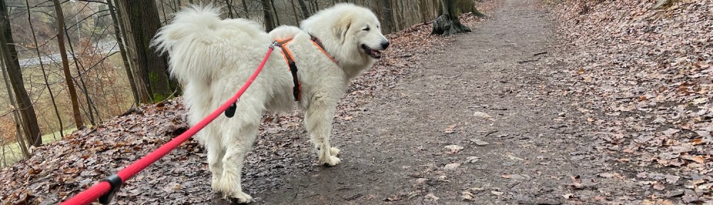 Mein großer Mensch hat auch erstmal gefrühstücksfuttert und danach sind wir spazieren gegangen. Die Straße lang und dann zum Stadtpark. Das hat mir mein großer Mensch versprochen, daß wir mal wieder durch den Stadtpark laufen. Und das haben wir auch gemacht.