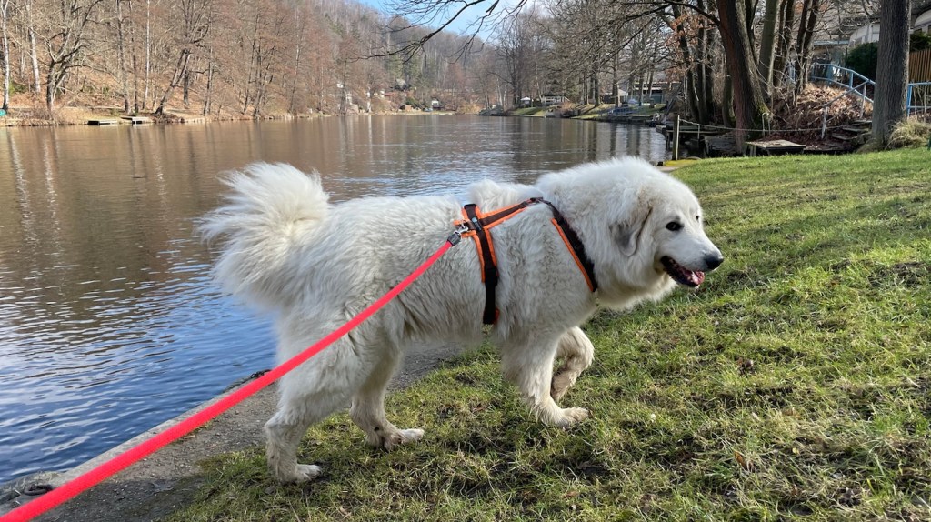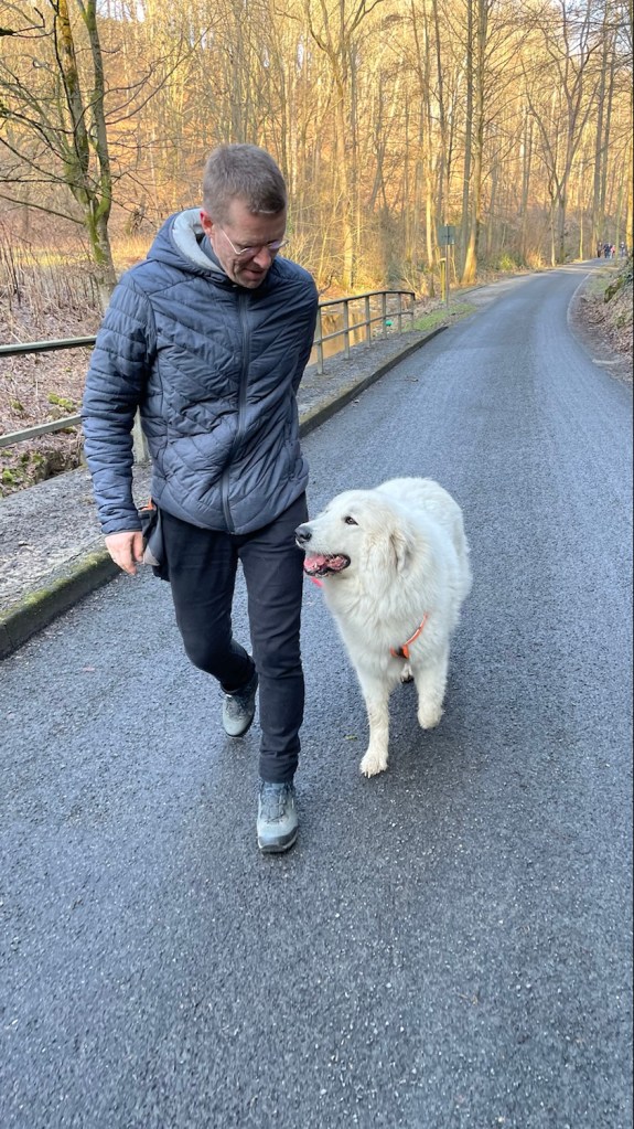 Zu Hause habe ich erstmal Pyriprinzessinnenschönheitsschlaf gemacht. Muß ja auch sein. Weiiil, nachmittags wollten wir ja noch einen Sonntagsspaziergang machen. Da haben mein großer Mensch und ich dann auch meine große Menschin und die Frau Nachbarin mitgenommen.