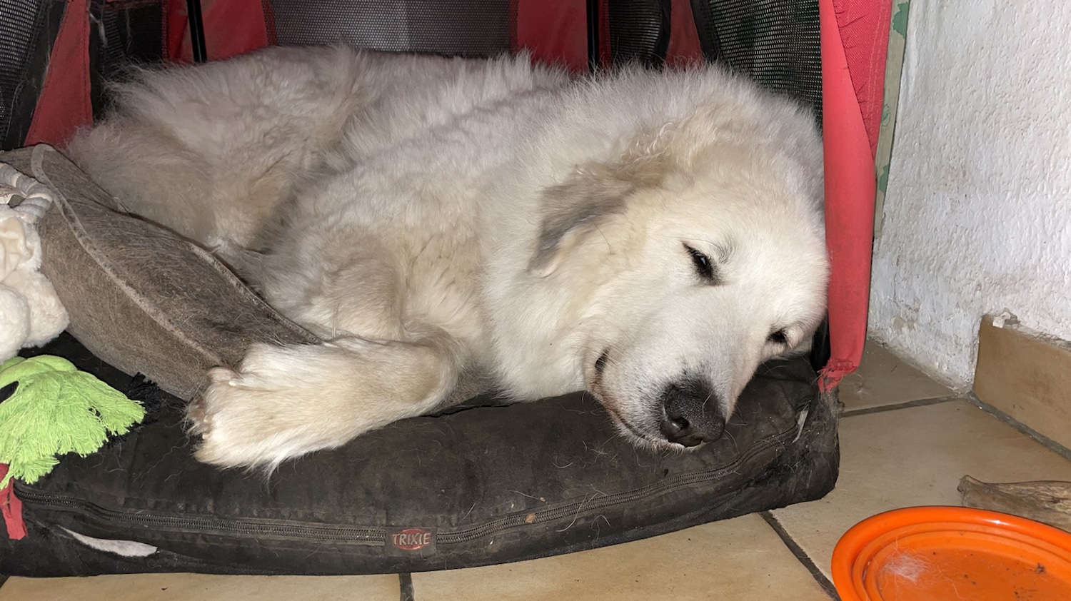 Zu Hause hat mich mein großer Mensch in meiner Kellerwohnung mit meinem Pyriprinzessinnentrockenrubbelhandtuch dann ganz trockengerubbelt. Das gefällt mir immer gut. Dann hat er mir noch meine Pyrizähnchen geputzt und dann habe ich mich in meine kleines rotes Ferienhäuschen gekuschelt und schön geschlummert. Gute Nacht! 🐶👸🏼