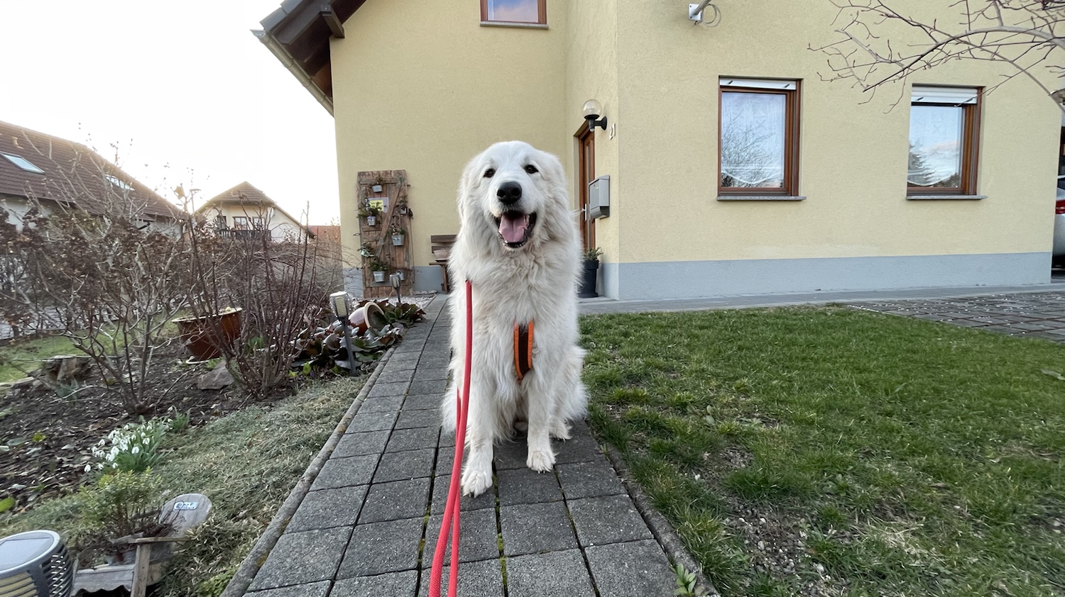 Mein großer Mensch ist erst spät von seiner Arbeit nach Hause gekommen. Aber da war er dann gleich bei seiner Bella. Meine große Menschenschwester konnten wir da gar nicht von ihrer Arbeit abholen. Aber mein großer Mensch hat sie gleich mit meinem weißen französianischen Auto mitgebracht. Das geht auch. Und dann gab es noch Abendfutter. Und danach haben wir noch einen Abendspaziergang gemacht. Heute haben wir auch wieder die Frau Nachbarin mitgenommen.