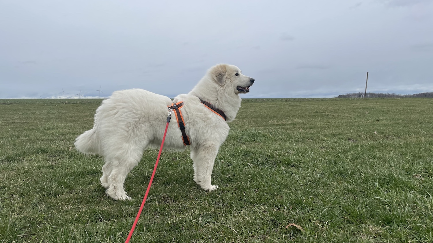 Und dann, ganz plötzlich, da sind sie da gewesen. Auf der Wiese. Aus dem Wald raus. Die großen, schlanken, braunen Hunde, die Rehe. Und die haben mich angeguckt. Und ich habe sie angeguckt. Und dann sind sie in den Wald gelaufen. Hops, einfach über den Zaun drüber. Ich hüpfe nicht über den Zaun drüber. Ich klettere höchstens. Ich bin eine Pyrenäenberghündin!
