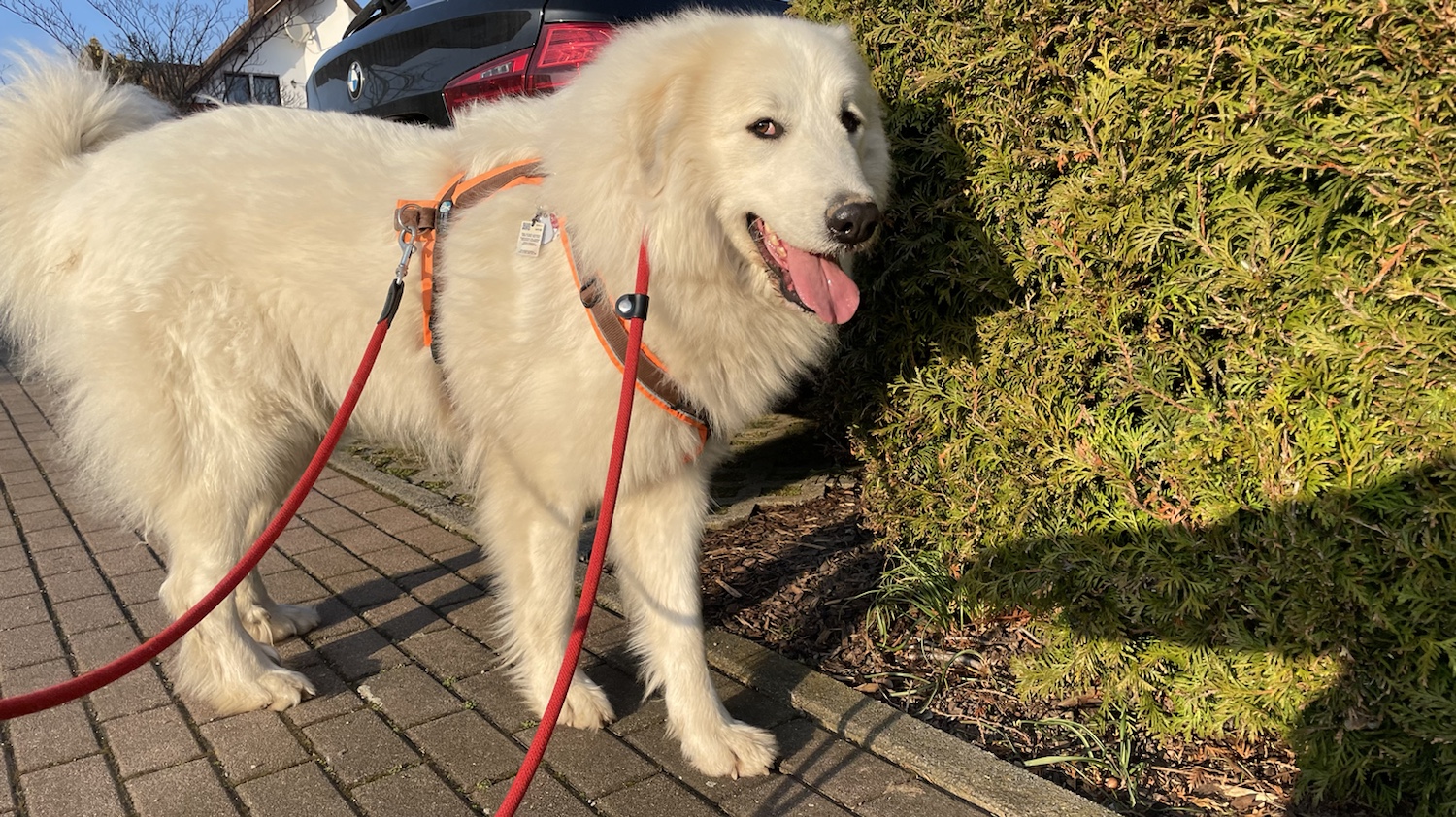 Und mein großer Mensch ist erst spät von seiner Arbeit gekommen und da sind wir gleich eine Runde spazieren gegangen. Durch mein Wohngebiet. Aber ich war Bestimmer! Ich durfte bestimmen, wo wir langlaufen. Ich bin nämlich eine Chefin! Wie meine Mami. Die ist auch eine Chefin. Jawoll!